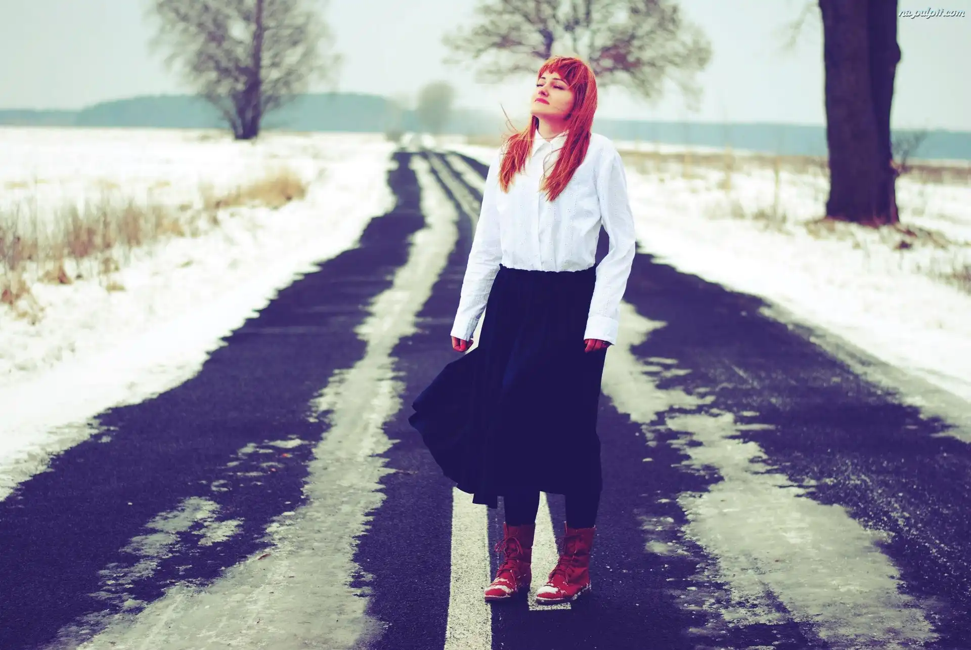 Droga, Długie, Kobieta, Włosy