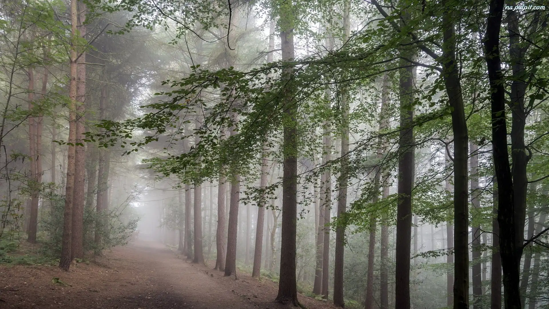 Droga, Drzewa, Las, Mgła Na Pulpit