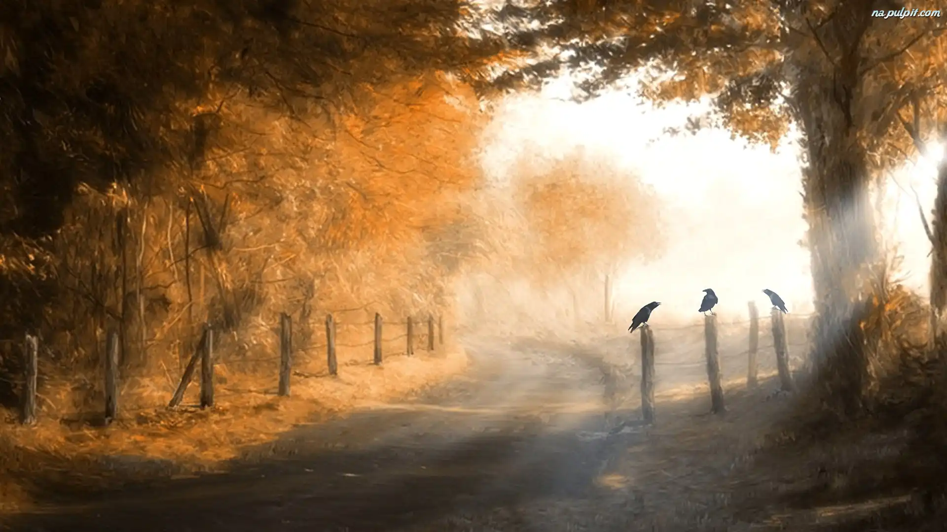 Mgła, Droga, Drzewa Na Pulpit
