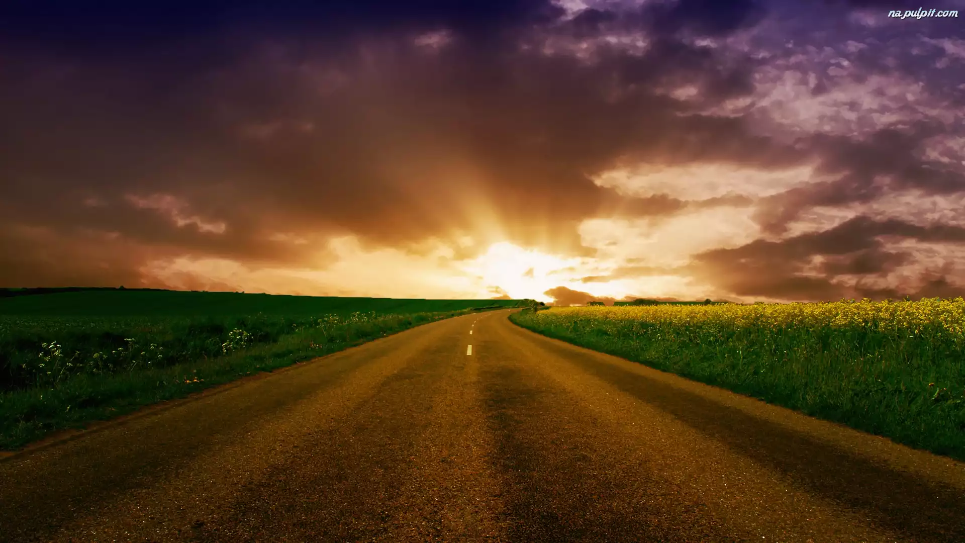 Niebo, Droga, Łąki Na Pulpit