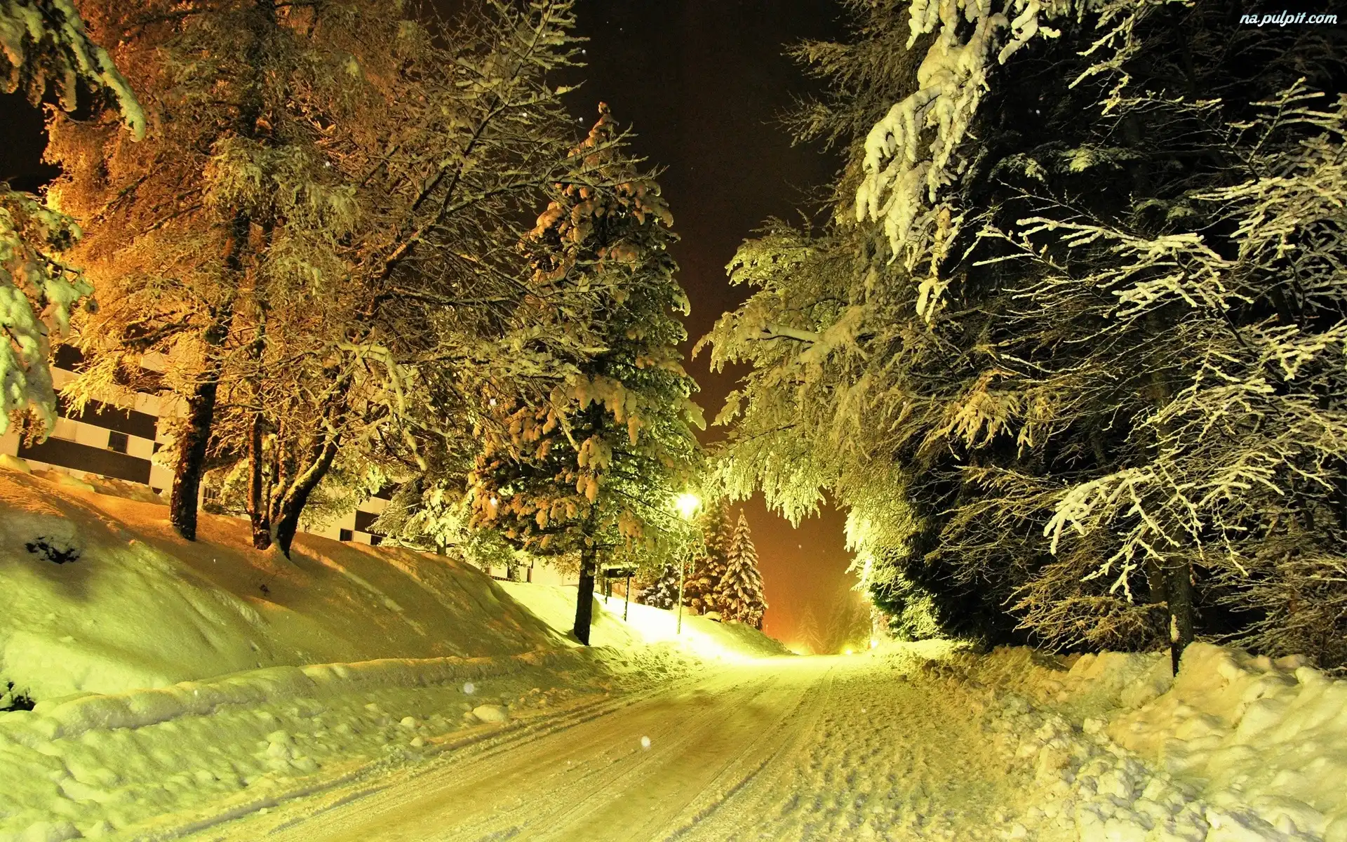 Śnieg, Droga, Drzewa Na Pulpit