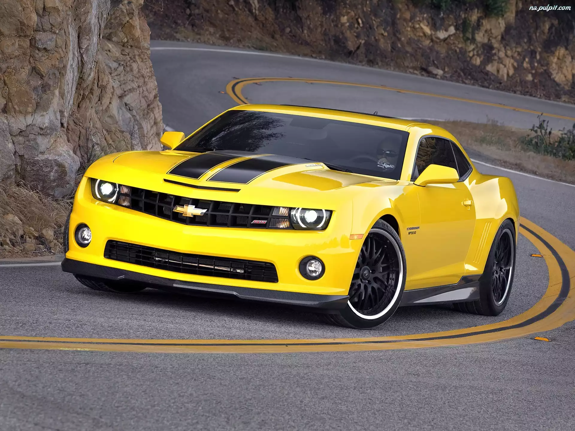 Droga, Chevrolet, Żółty, Camaro Na Pulpit