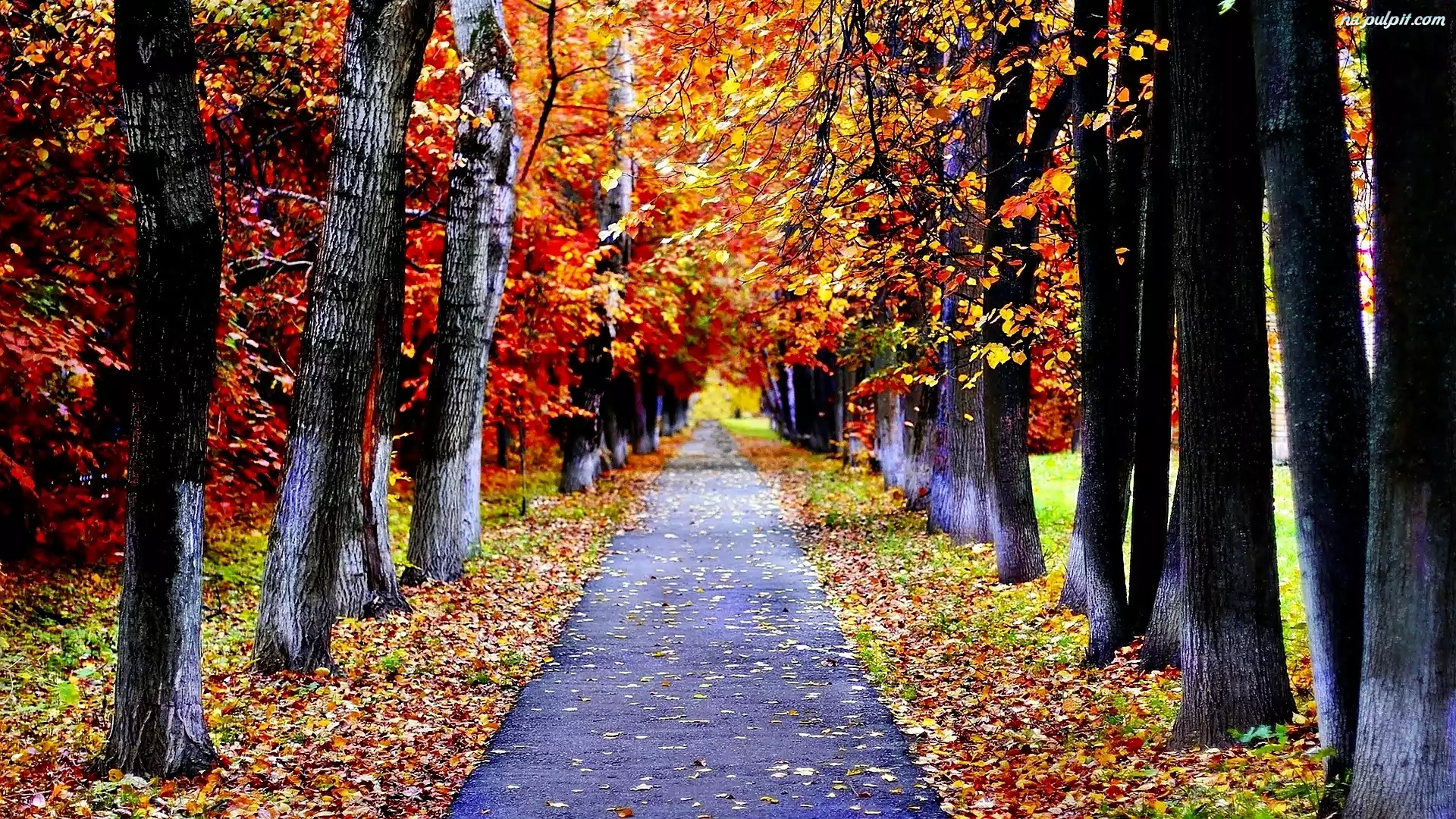 Park, Droga, Liście, Drzew, Szpaler, Jesień, Opadłe
