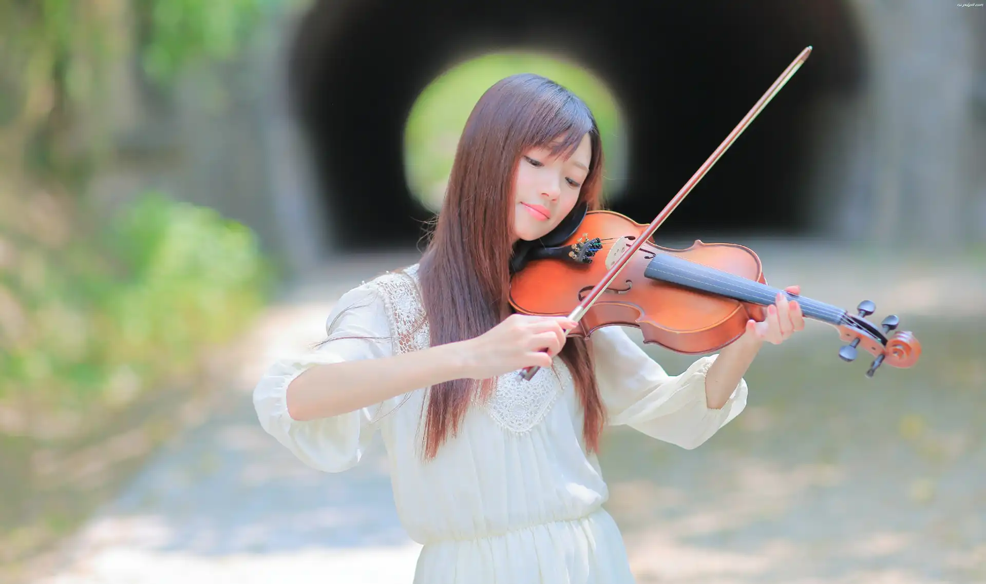 Droga, Skrzypce, Azjatka, Piękna, Muzyka