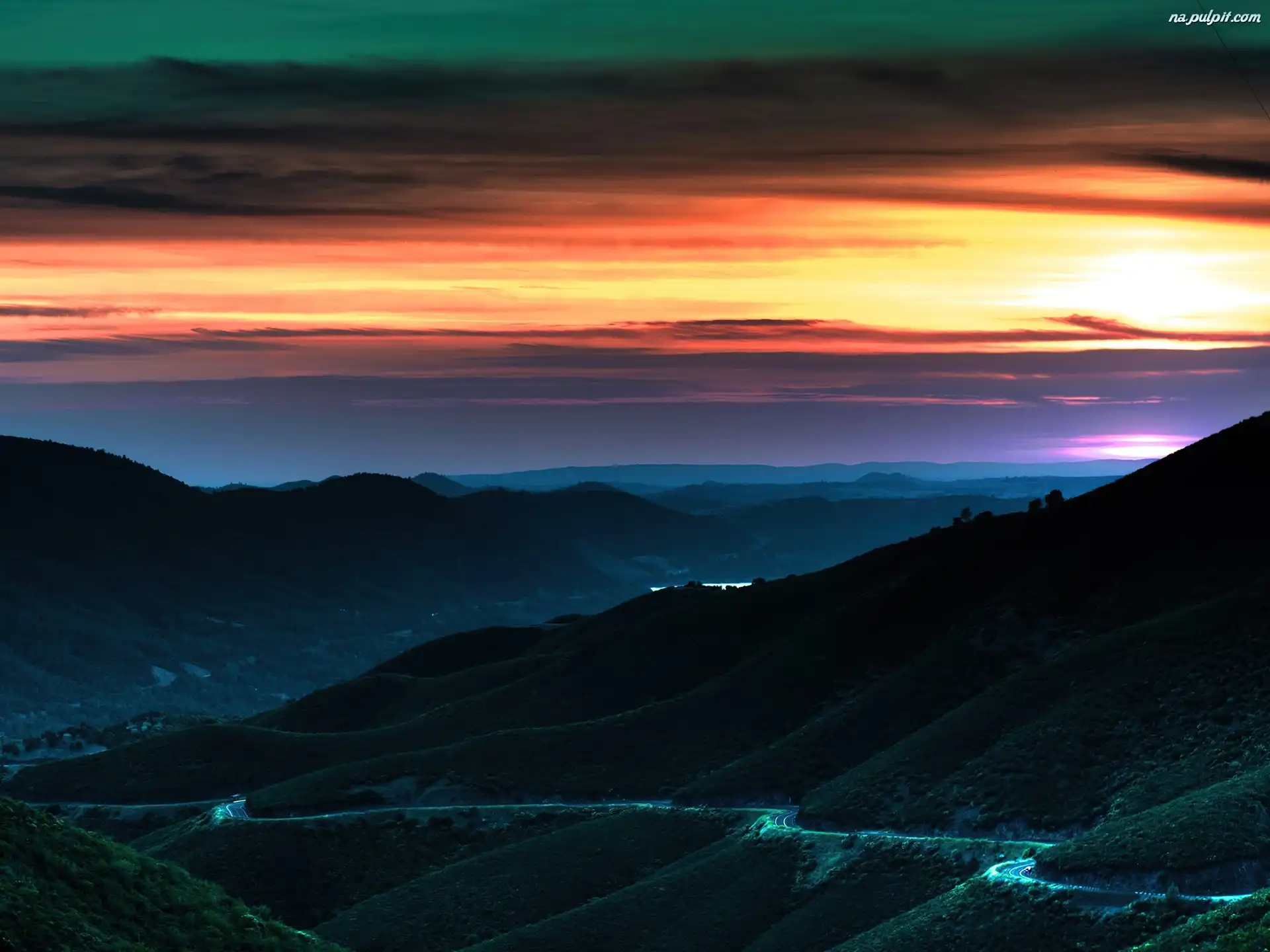 Droga, Słońca, Zachód, Piękny, Kręta Na Pulpit