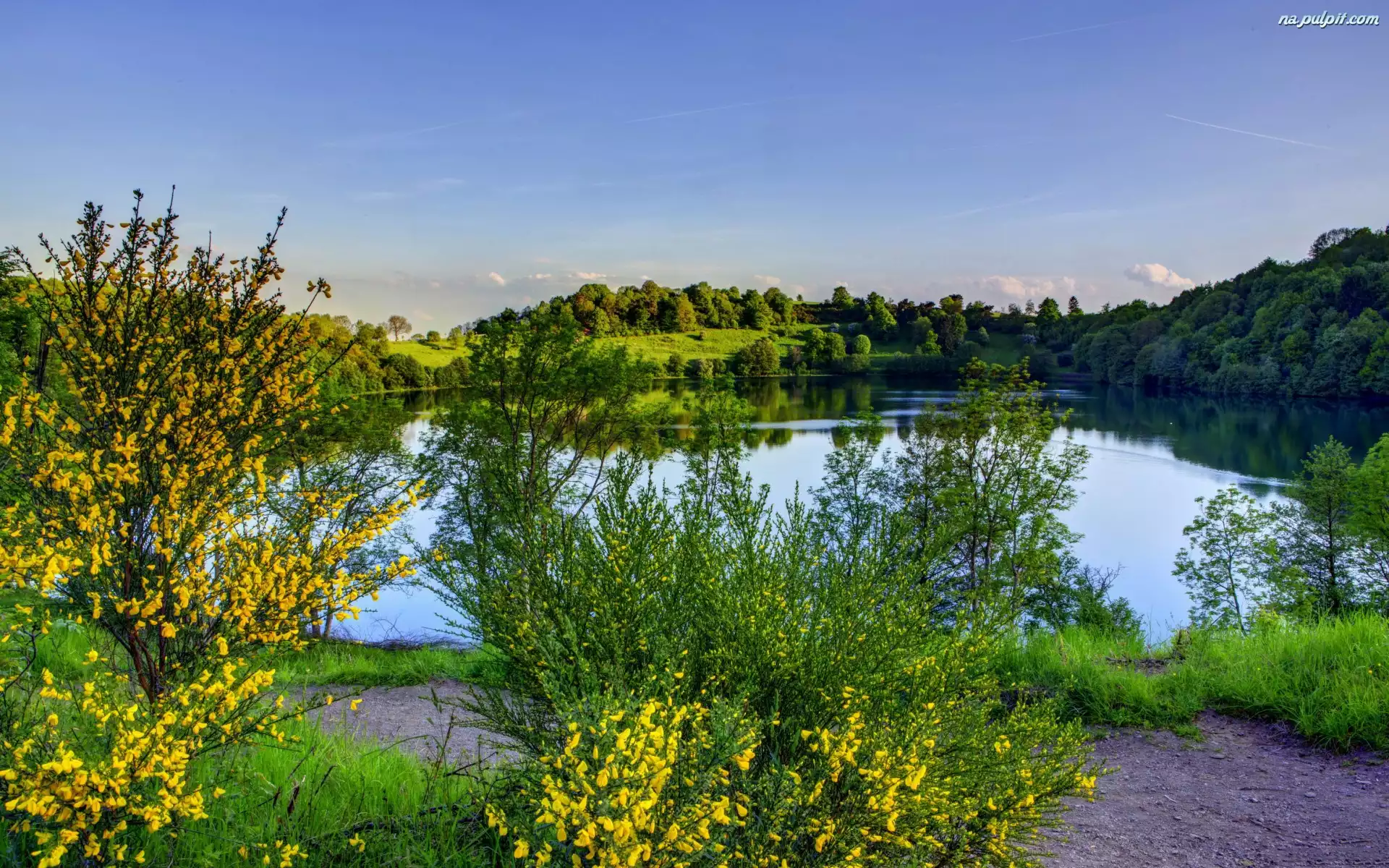 Droga, KwitnÄ…ce, Rzeka, Drzewa Na Pulpit