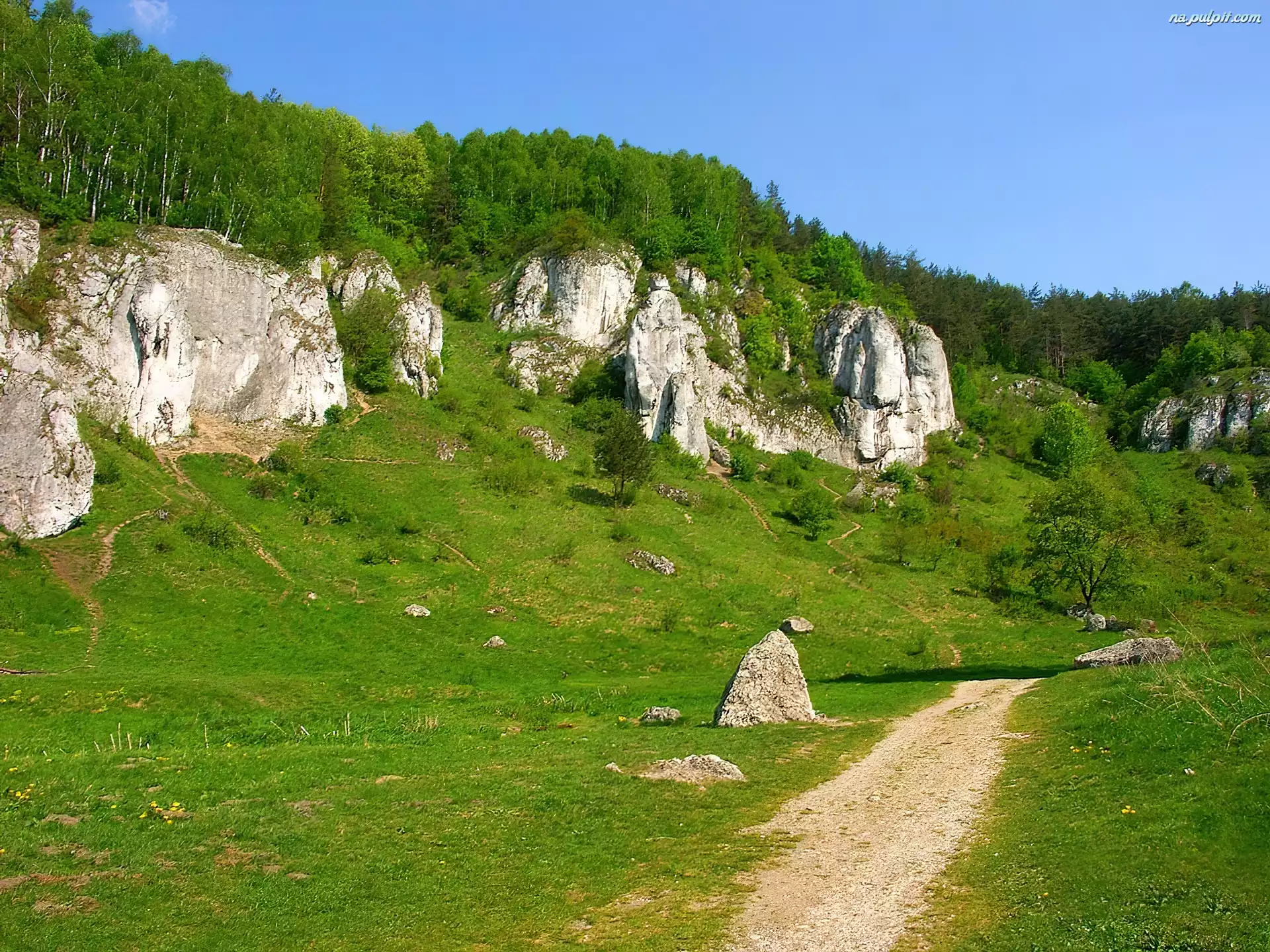 Droga, Łąka, Skały, Las Na Pulpit