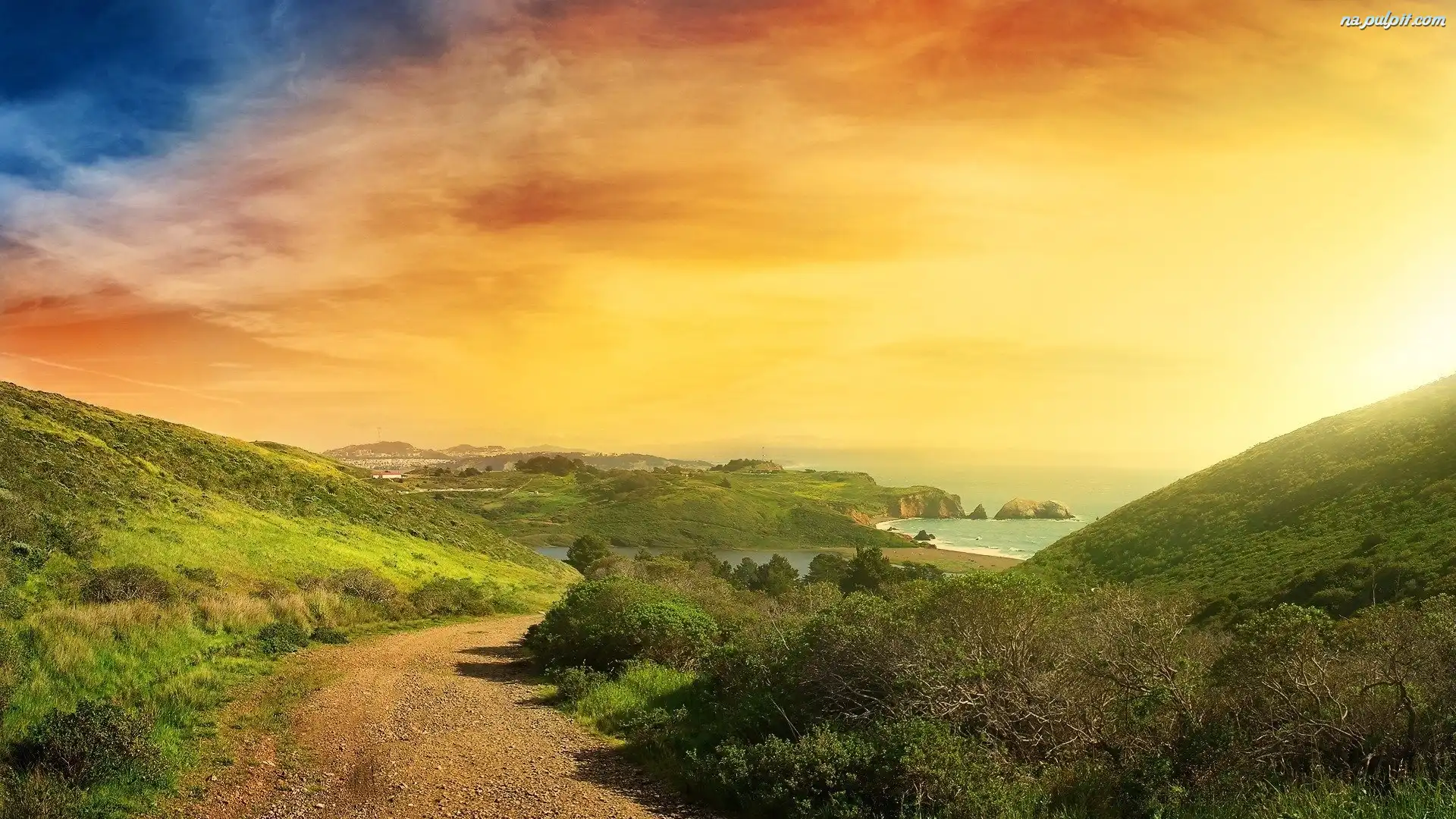 Droga, Morze, Zachód Słońca, Góry Na Pulpit