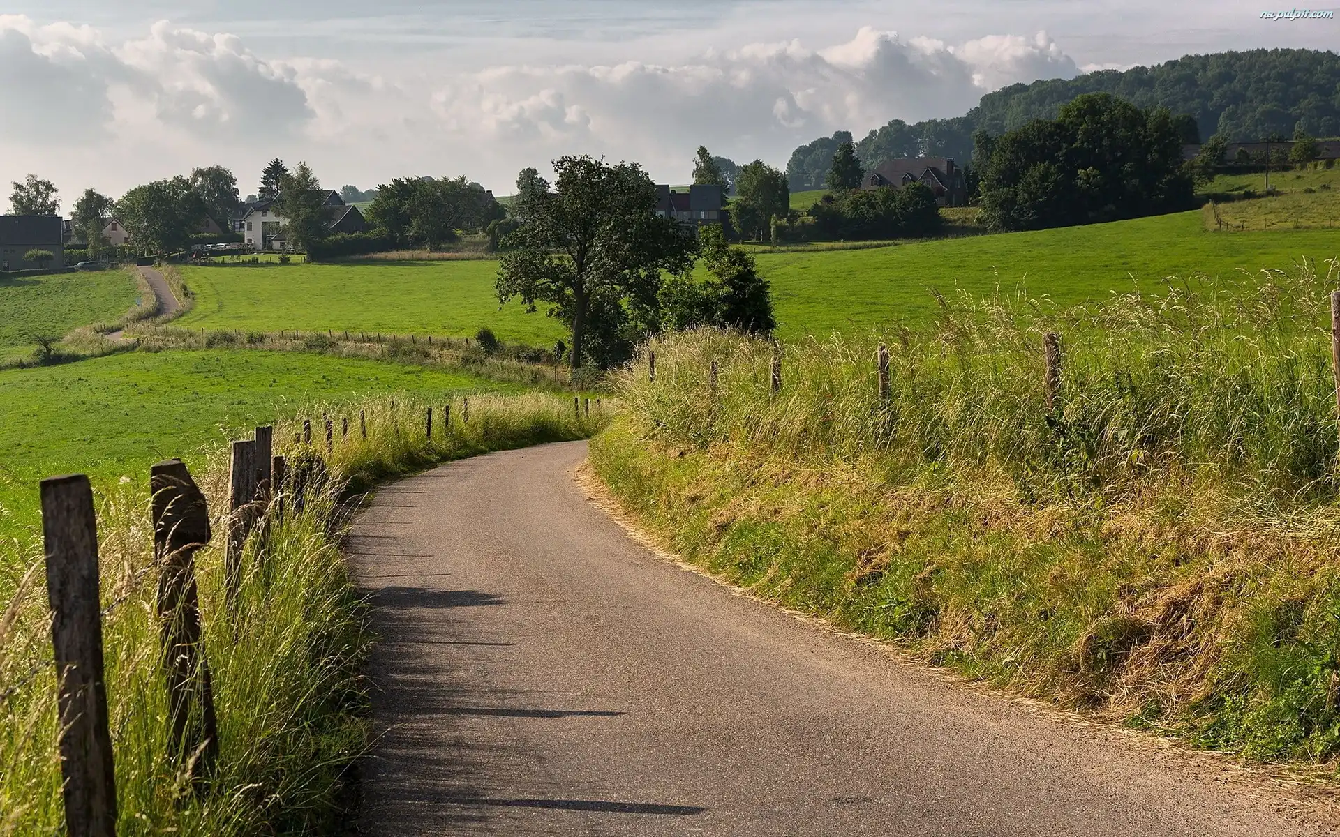 Wieś, Droga, Łąki Na Pulpit