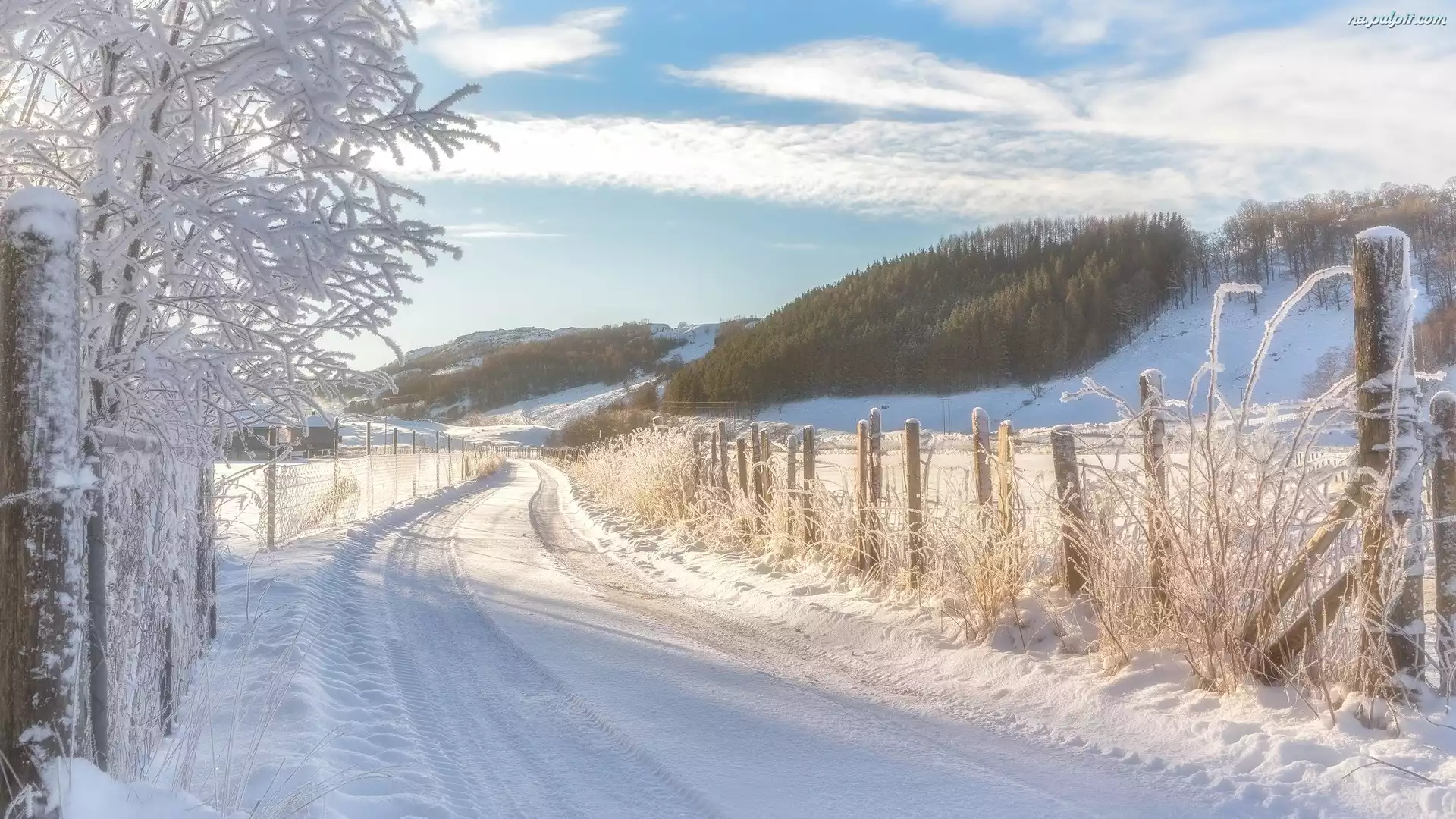 Droga, Szron, Las, Drzewa, Zima, Ogrodzenie Na Pulpit