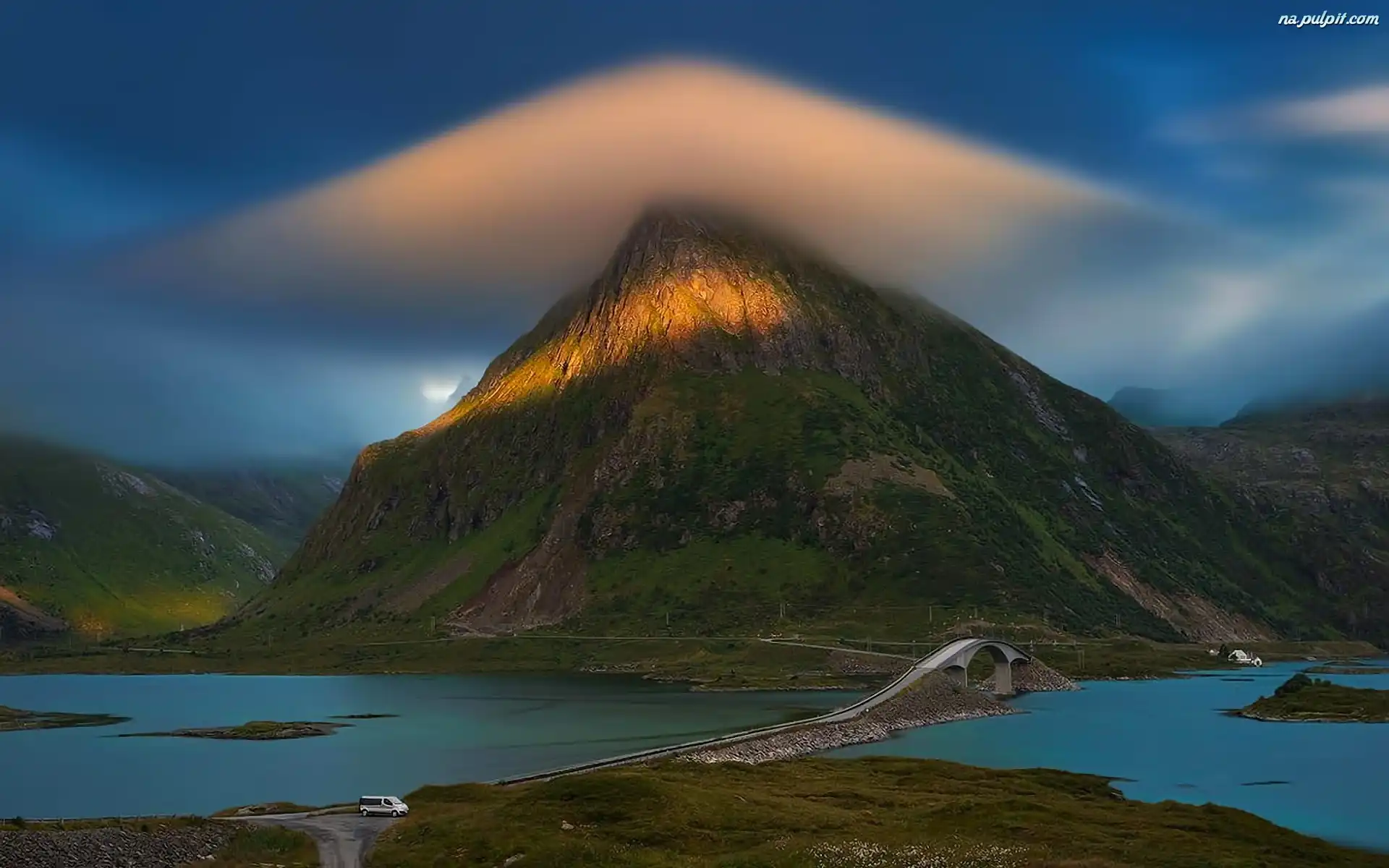Drogi, Oświetlone, Most, Jezioro, Góry Na Pulpit