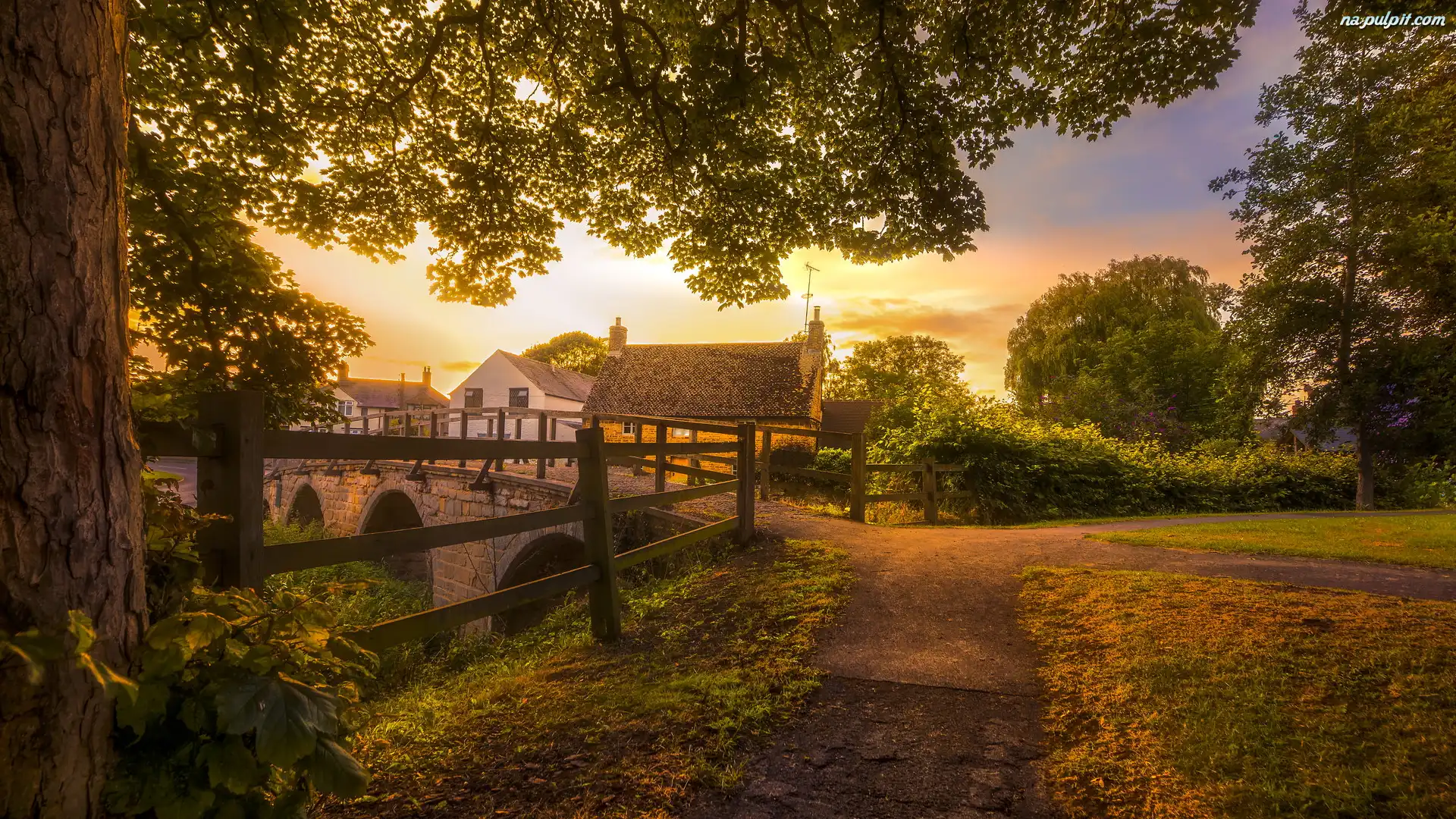 Wieś, Most, Ogrodzenie, Płot, Medbourne, Anglia, Drzewa, Domy, Drogi Na Pulpit