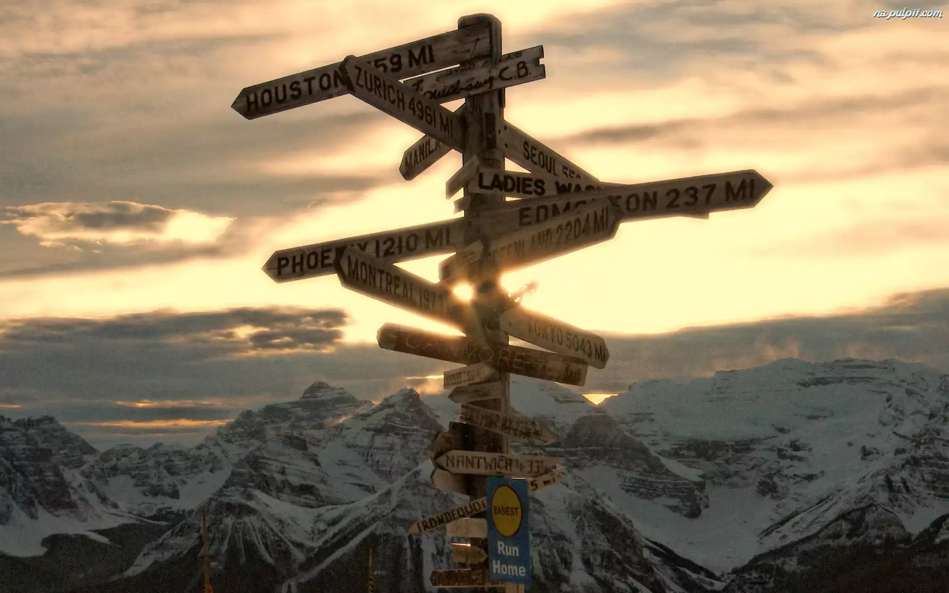 Drogowskazy, Słońca, Zachód, Skały Na Pulpit