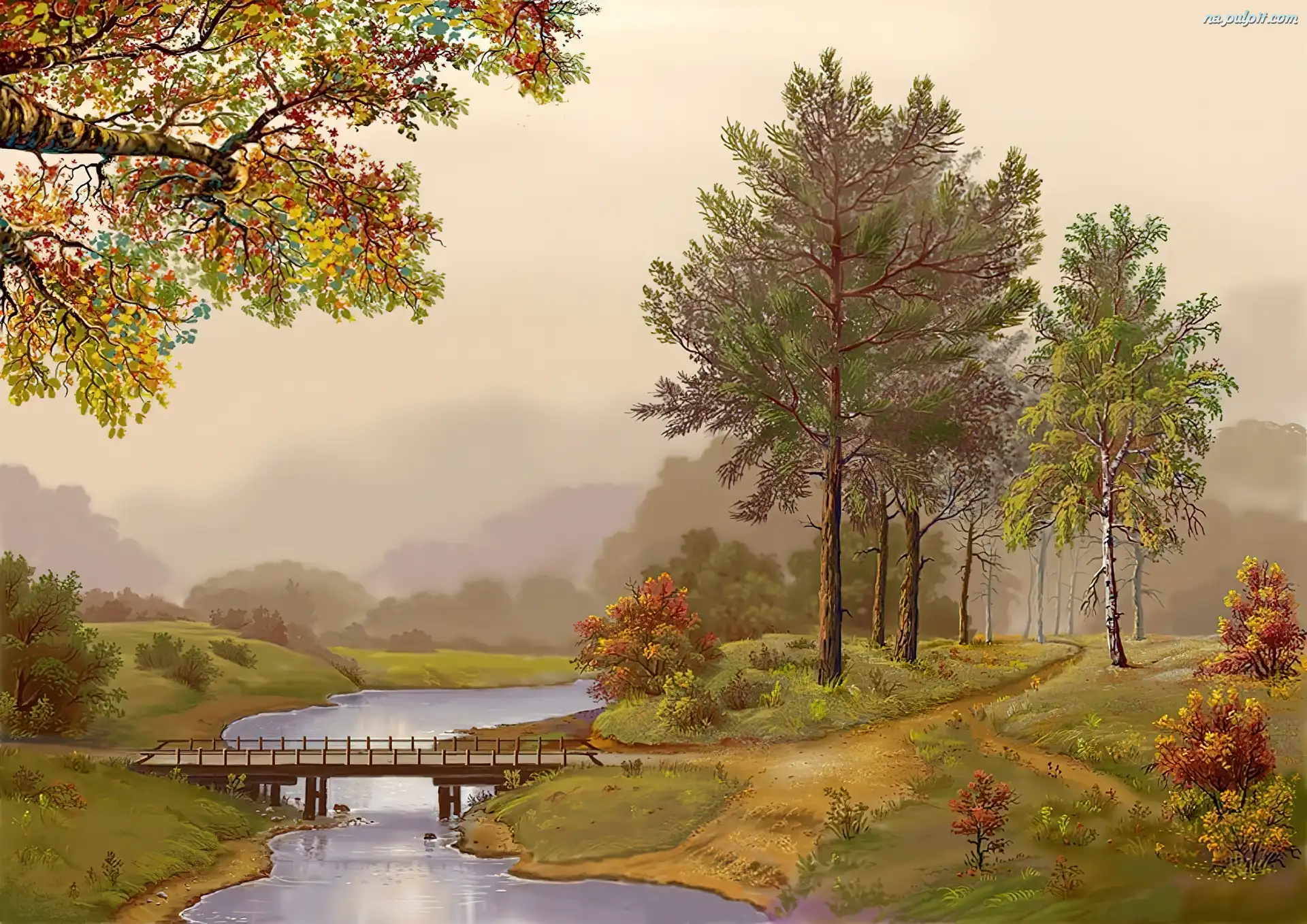 Dróżka, Drewniany, Rzeka, Mostek