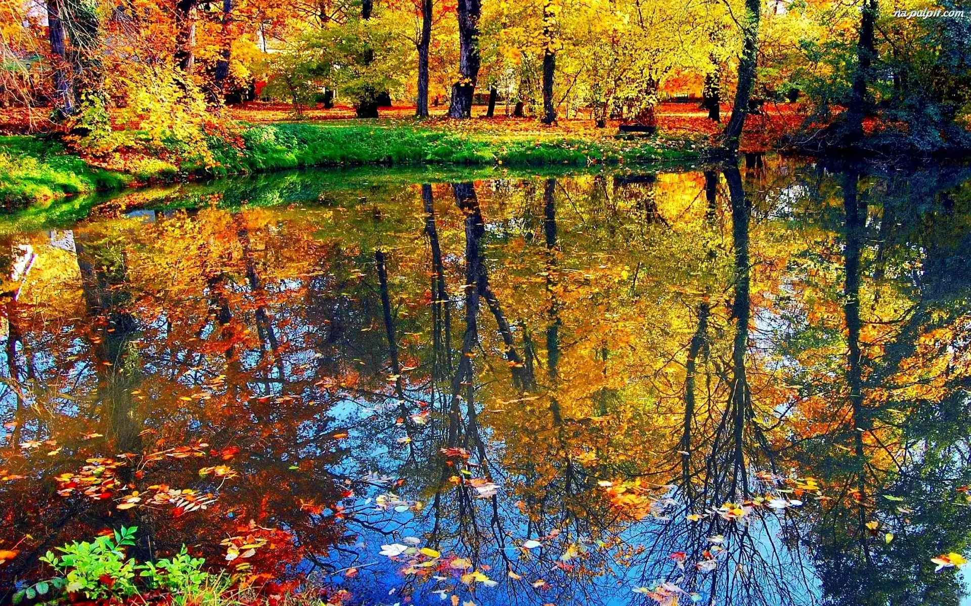 Drzew, Jesienny, Krajobraz, Odbicie Na Pulpit
