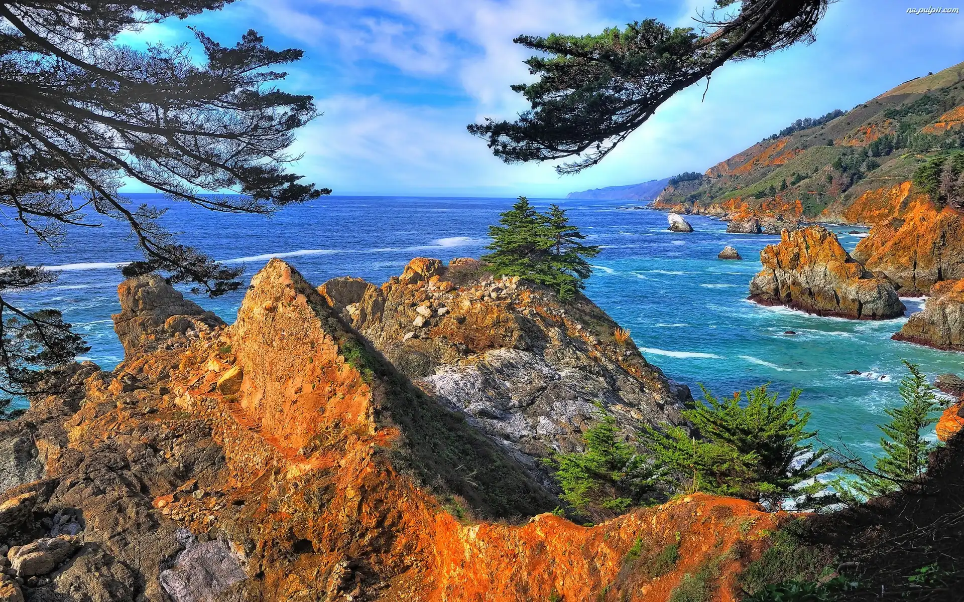 Drzew, Skały, Morze, Gałęzie Na Pulpit