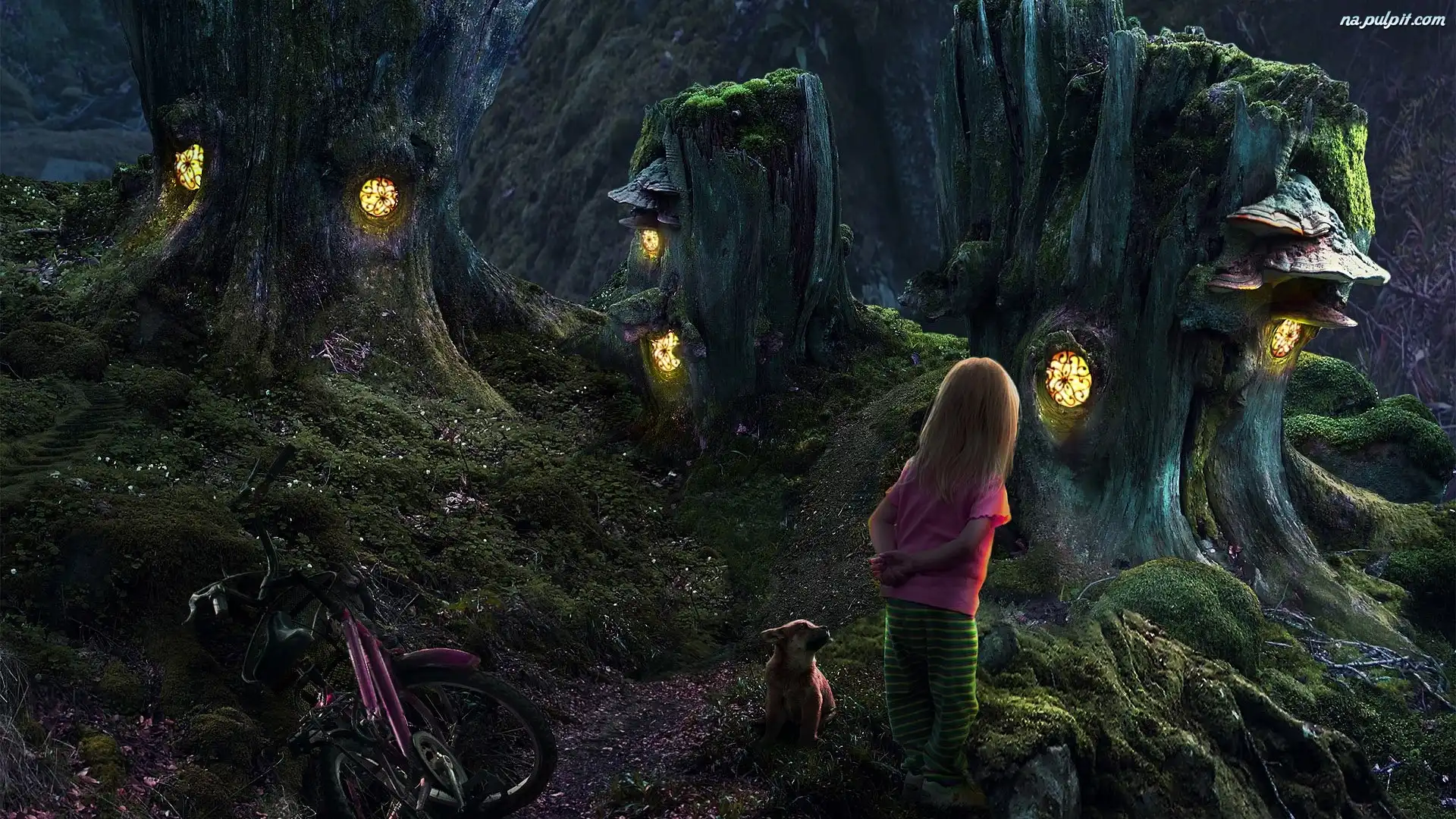 Drzew, Dziewczynka, Piesek, Światło, Pnie, Góry Na Pulpit