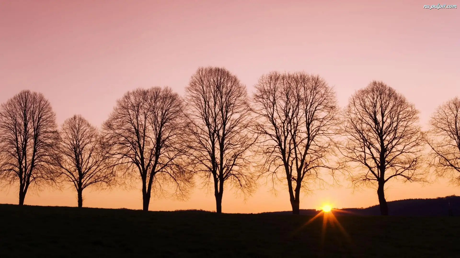 Drzew, Słońca, Zachód, Rząd Na Pulpit