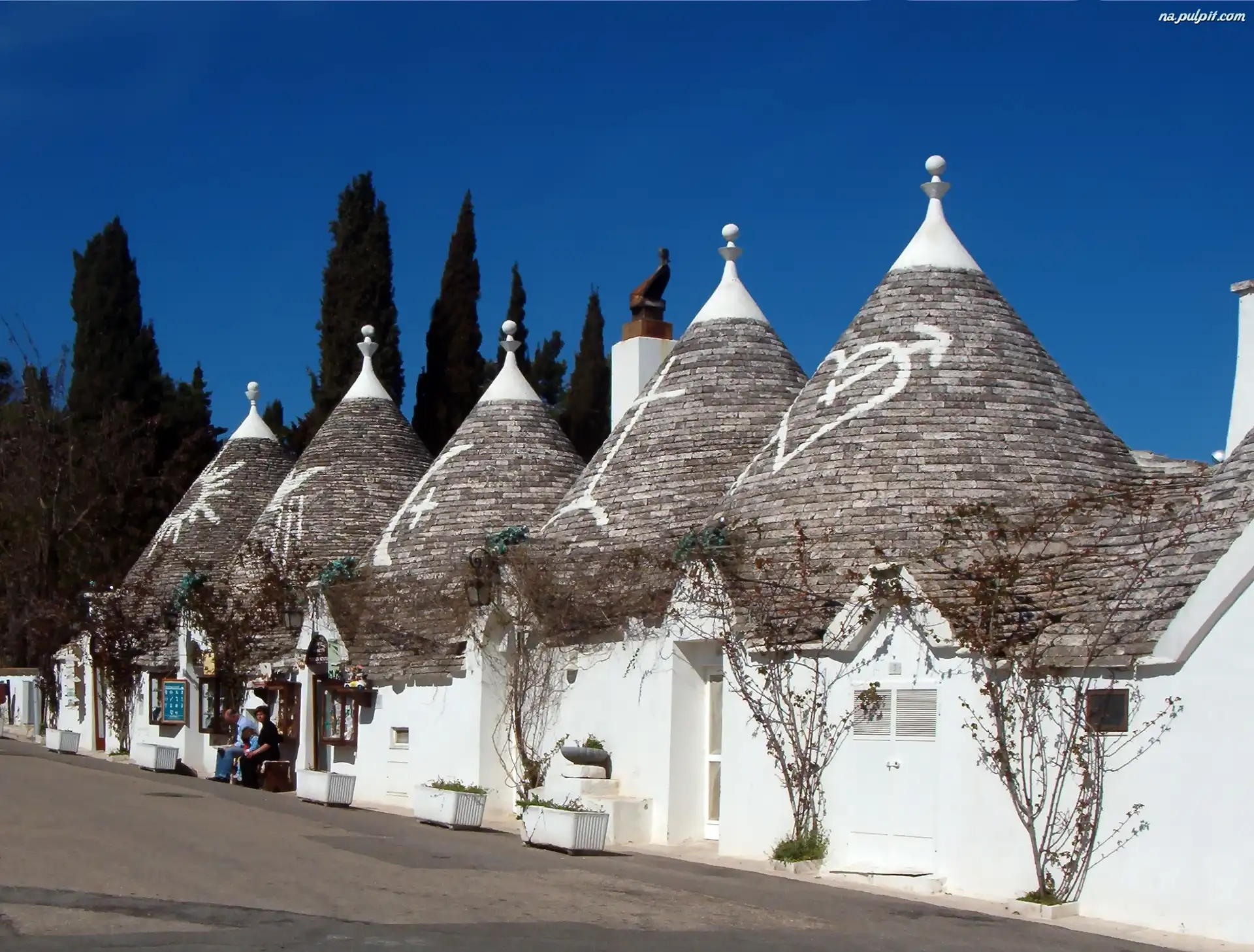 Drzewa, Domy, Alberobello, Ulica Na Pulpit