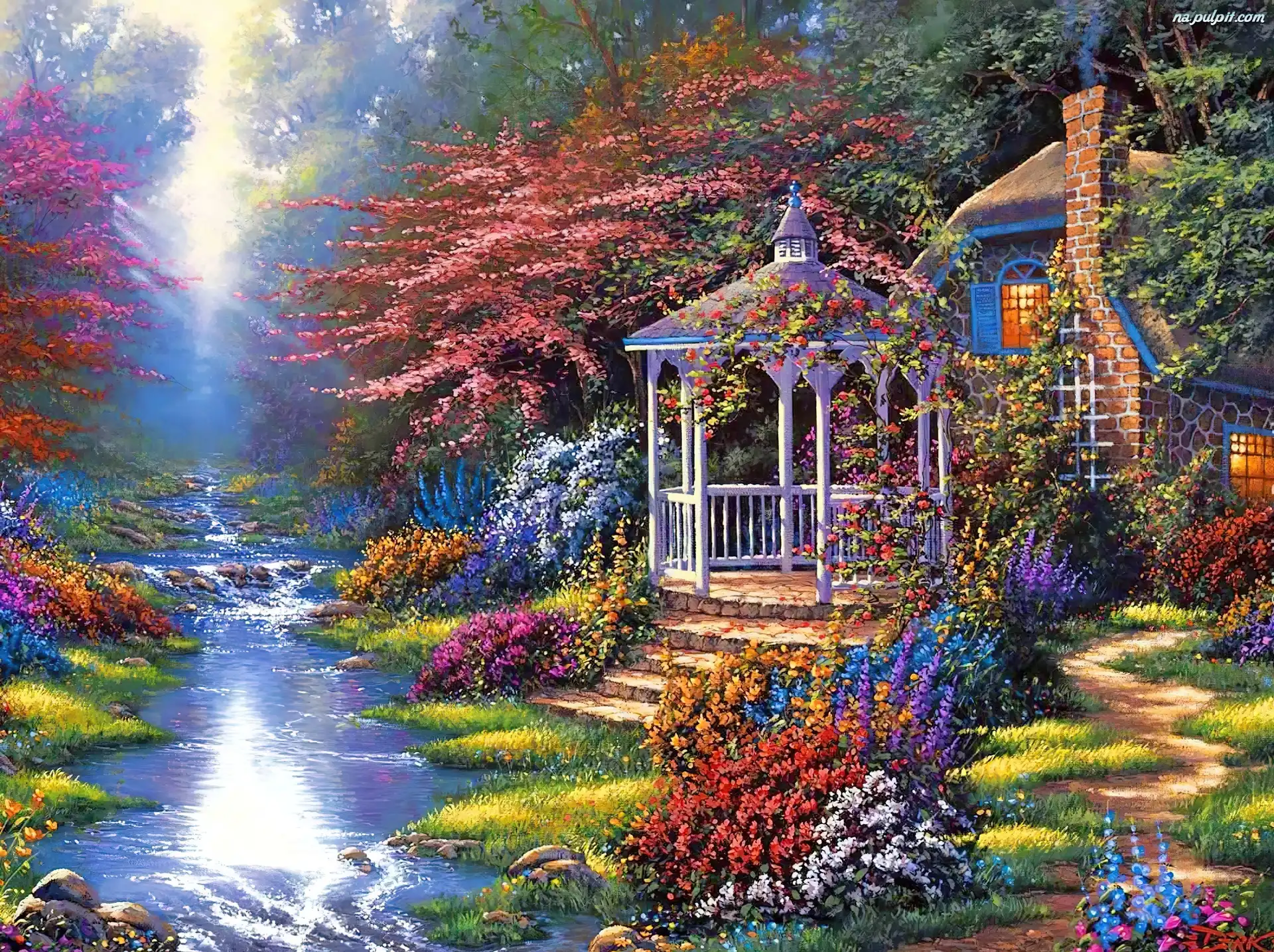 Drzewa, Dom, Altana, Rzeka Na Pulpit