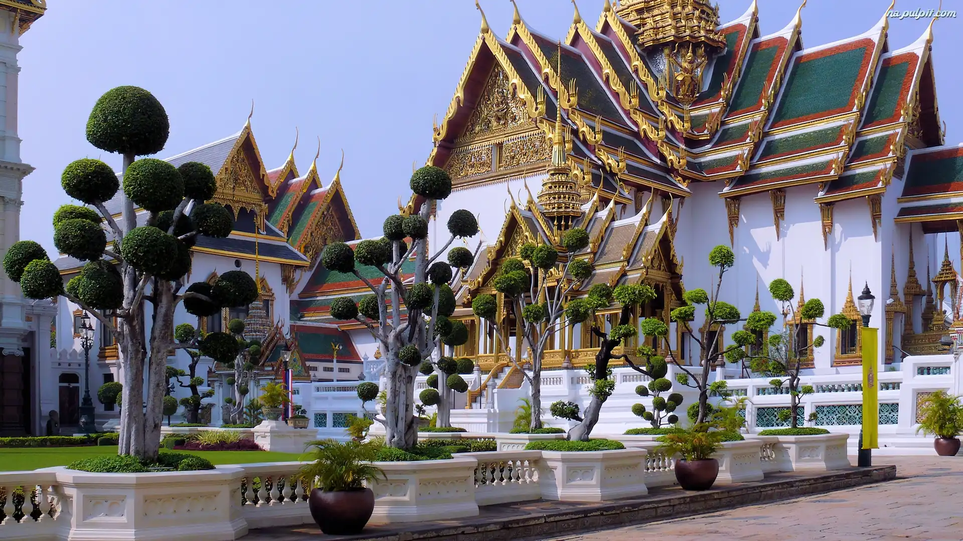 Drzewa, Pałac, Bangkok, Ozdobne Na Pulpit