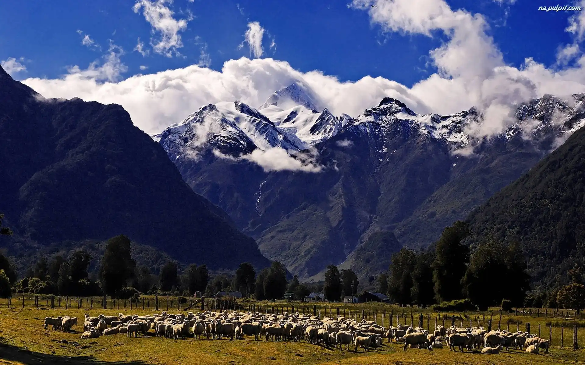 Kwiat, Fale, Góry, Krzew Góry Miłość, Owieczka, Baranek Niebo, śnieg, Góry, Chmura Barany, Krajobrazy, Łąki Owieczki Kaczuszka, Owieczka, Biała, Mała Odpoczynek, Lew, Owieczka Winorośl, Owce, Trawa Góry, Domki Kamienie, Chmura, Góry, Morze Góra Owieczki, Dwie, Małe Drzewa, Góry, Niebo
