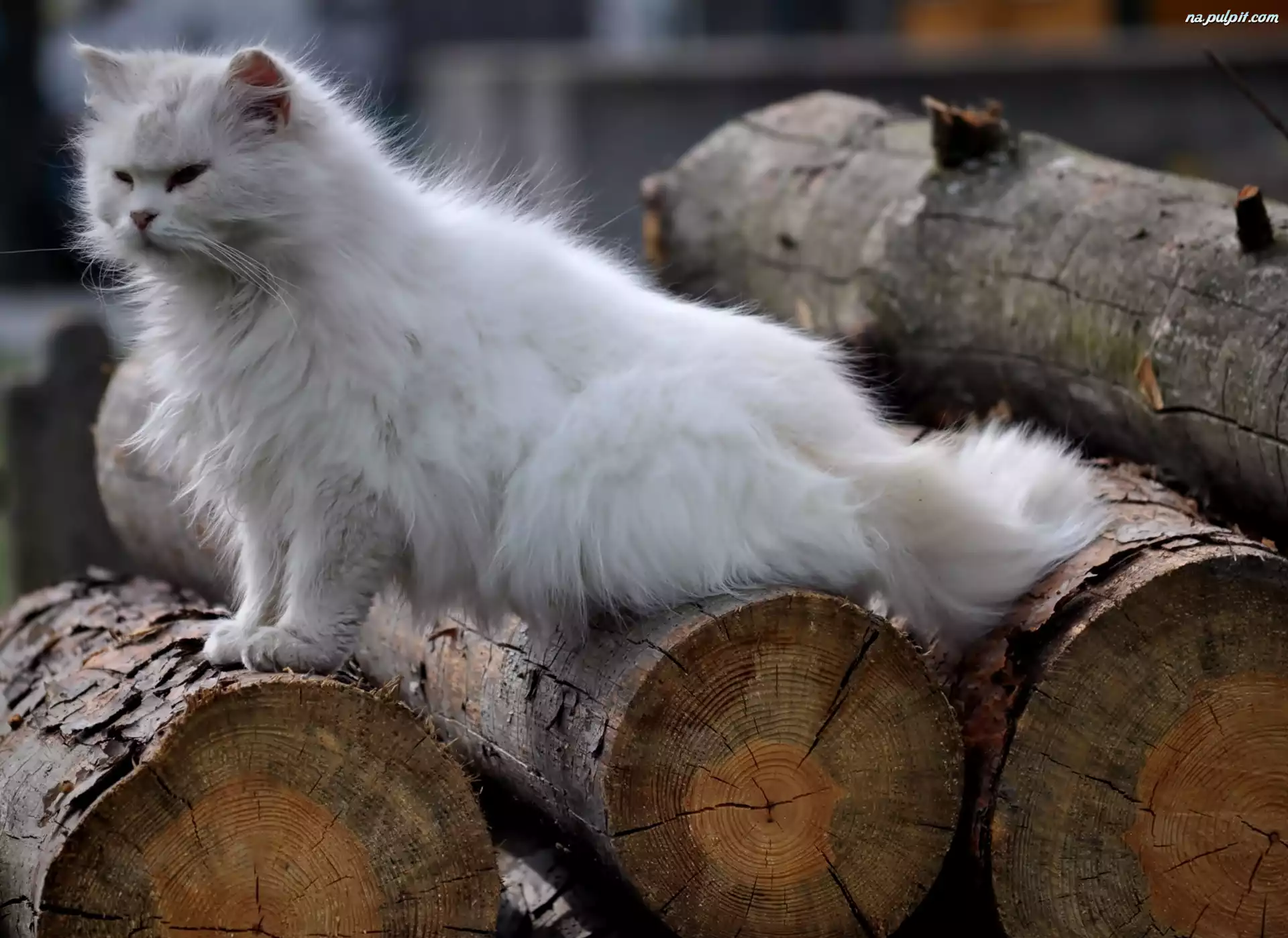 Drzewa, Kot, Biały, Kłody Na Pulpit