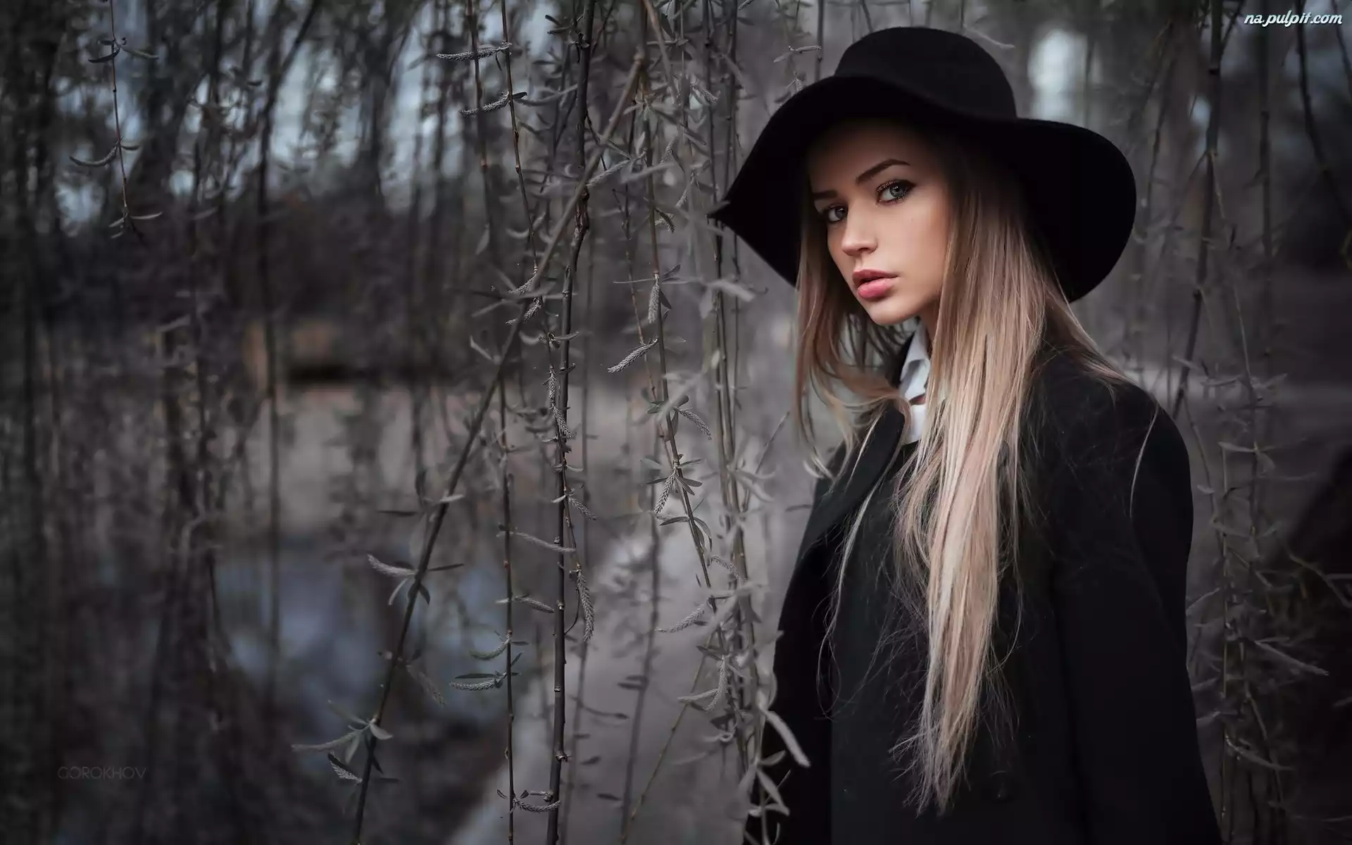 Drzewa, Makijaż, Modelka, Blondynka, Kapelusz Na Pulpit