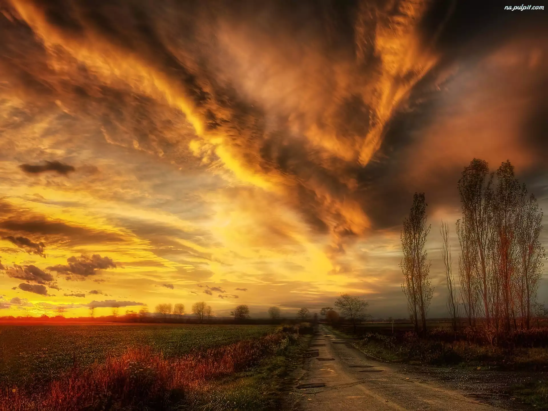 Drzewa, Zachód, Droga, Chmury, Słońca Na Pulpit