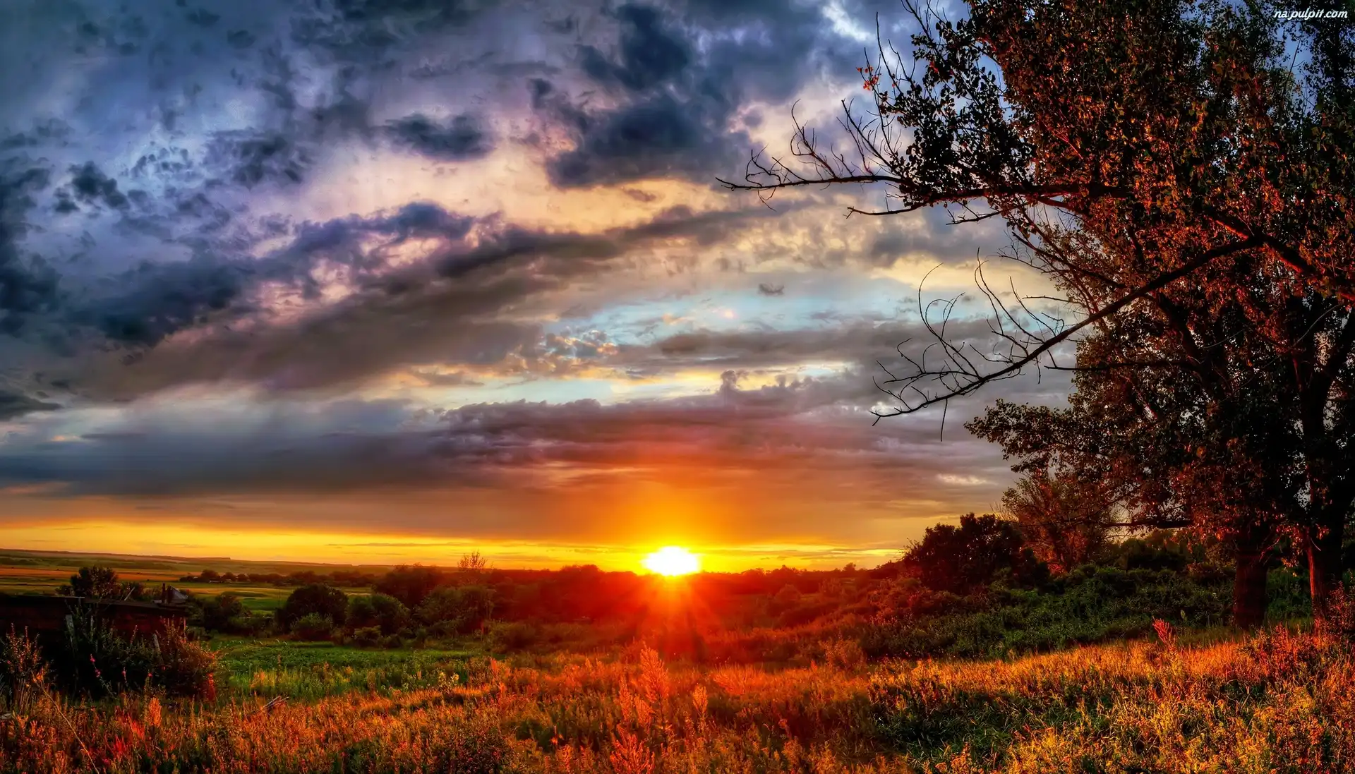Drzewa, Zachód, Chmury, Słońca Na Pulpit