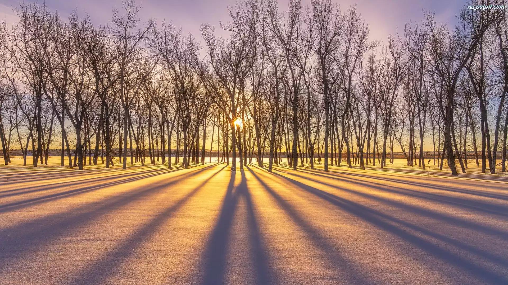 Zima, Drzewa, Cień, Wschód słońca Na Pulpit