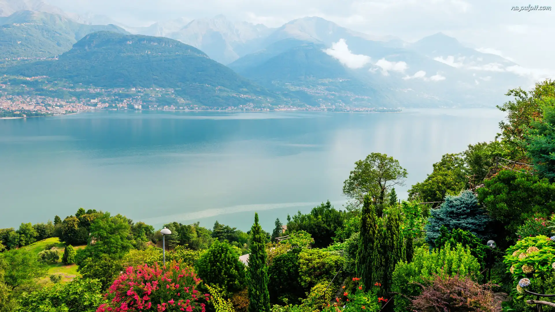 Włochy, Drzewa, Lombardia, Kwiaty, Ogród, Góry, Jezioro Como Na Pulpit