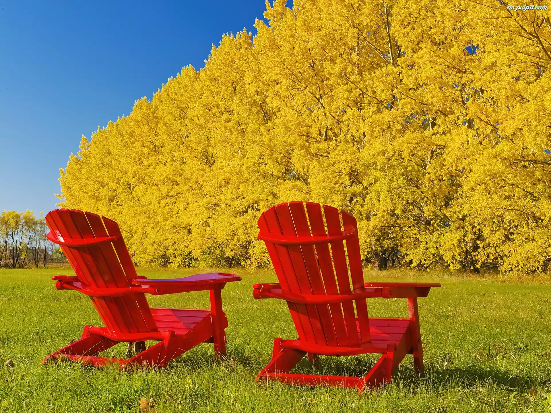 Drzewa, Leżaki, Drewniane, Czerwone, Żółte
