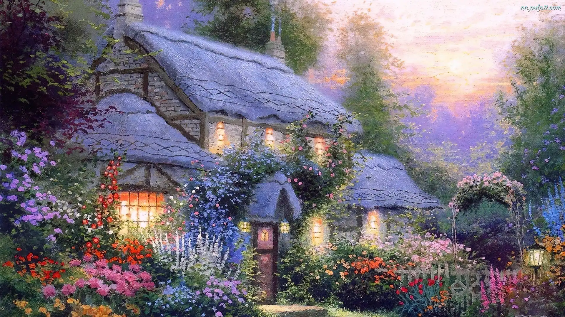 Drzewa, Ogród, Dom, Kwiaty Na Pulpit