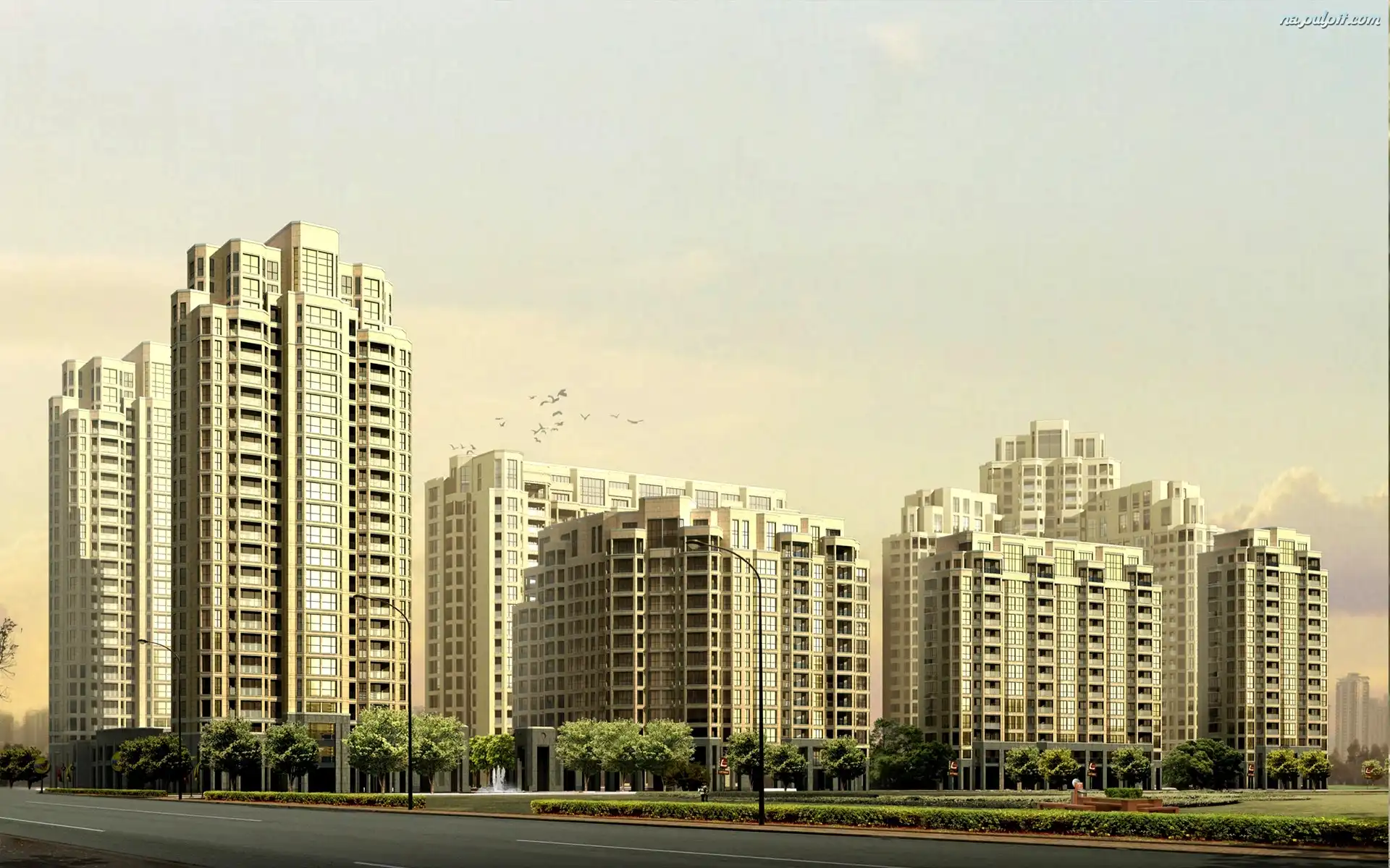 Drzewa, Niebo, Wieże, Trawnik Miasto, Taipei Chmur, Miasto, Drapacze Wieżowce, Hong Kong, Nocą Niebo, Wieżowce, Woda Chmur