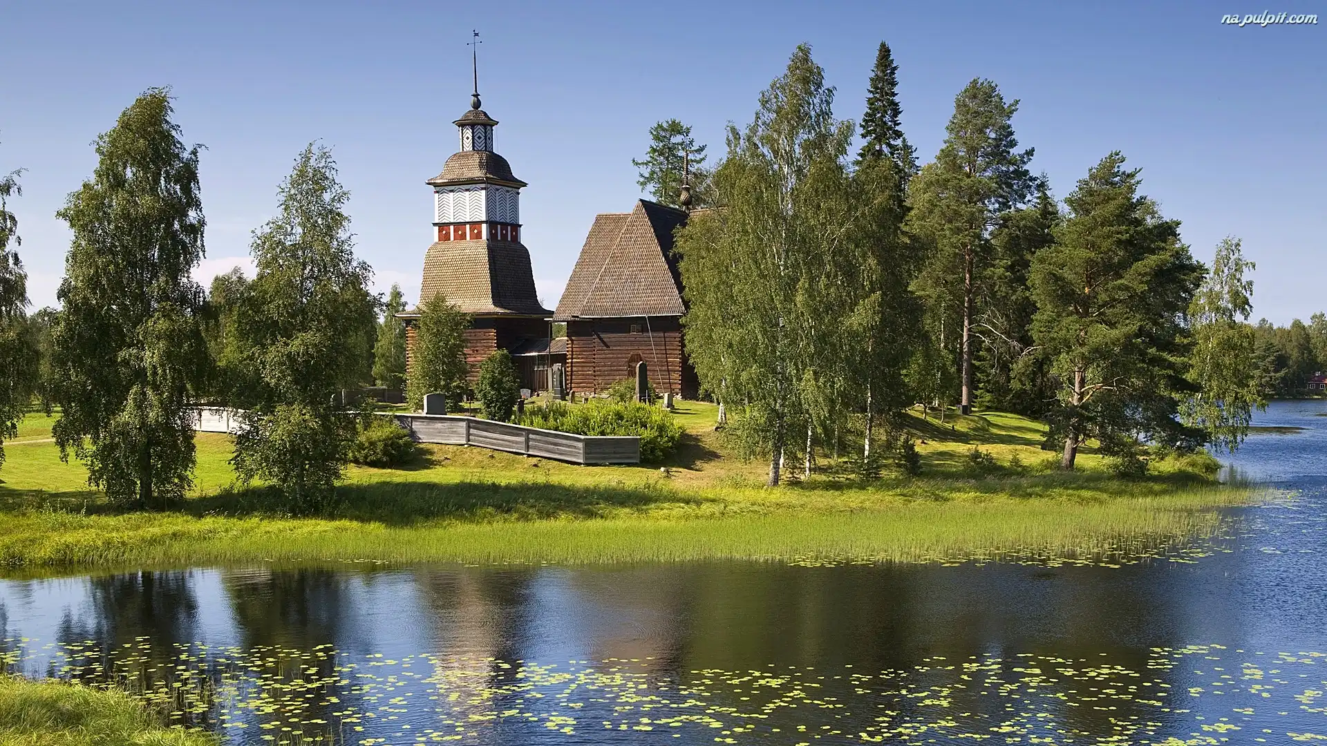 Drzewa, Kościół, Drewniany, Rzeka Na Pulpit
