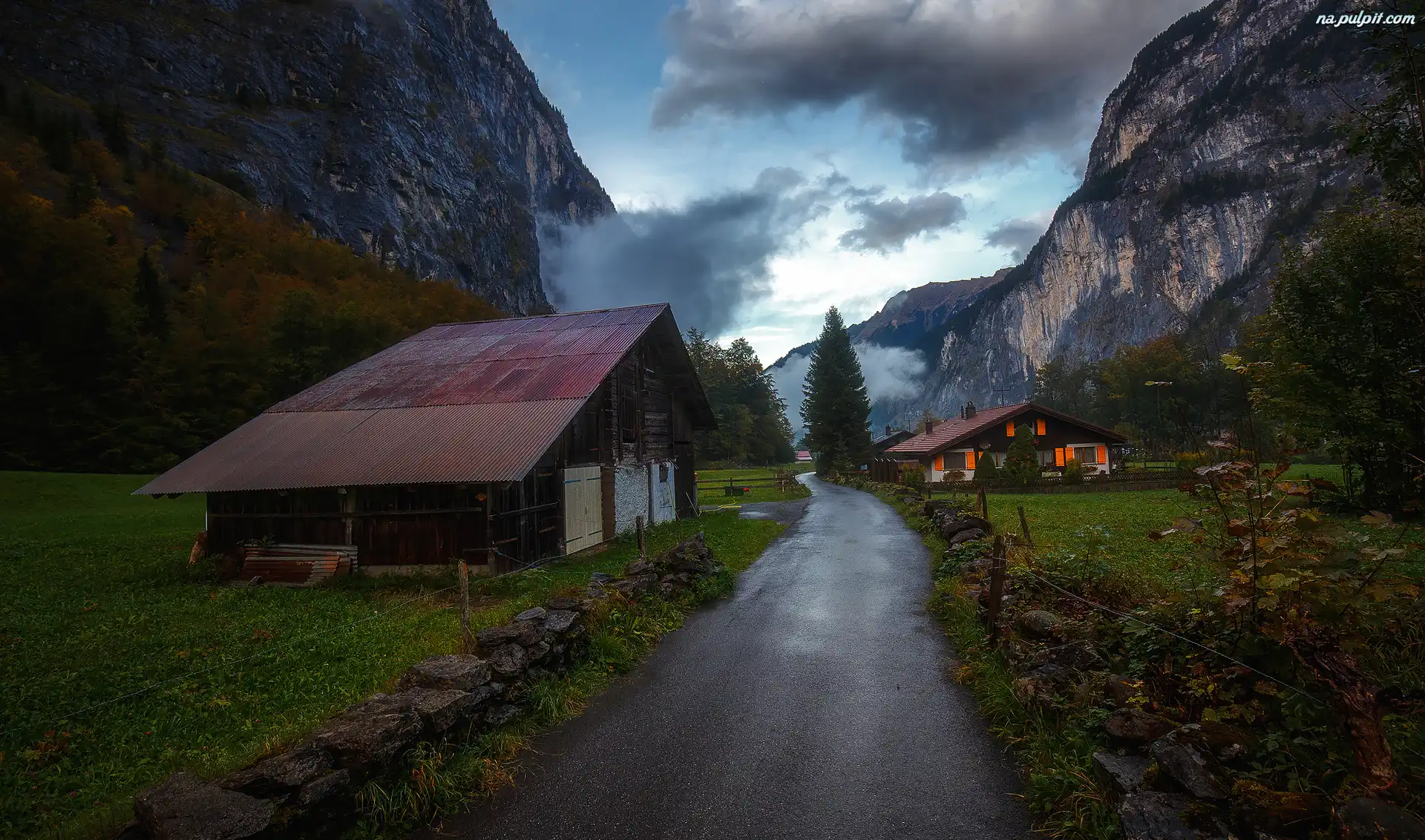 Górach, Droga, Piękna, W Dom, Palmy, Morze, Chmury Wyspa, Szkocja, Góra Mgłą, Drzewa, Las, Droga Góra Góry, Krzewy Chmury, Ulica, Zachód Słońca Domy, Słońca, Zachód, Rzeka Morze, Góry Drzewa, Drewniana, Las, Dróżka Góra, Zachody Śłońca Alberta, Montana, Jezioro, Prowincja Linia, Droga, Żółta Japonia, Dom