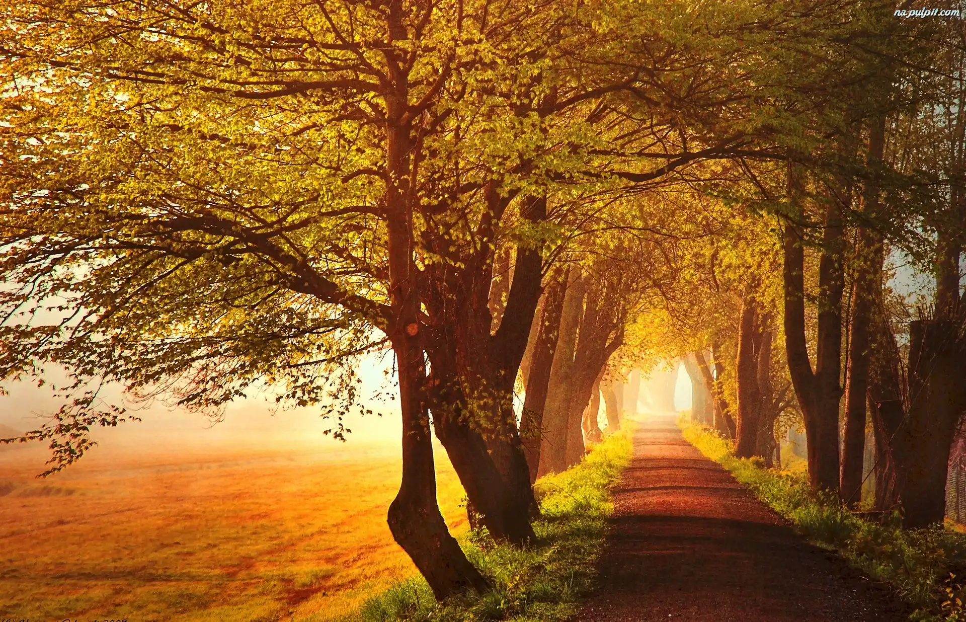 Drzewa, Światło, Jesień, Pola, Droga, Przebijające Na Pulpit