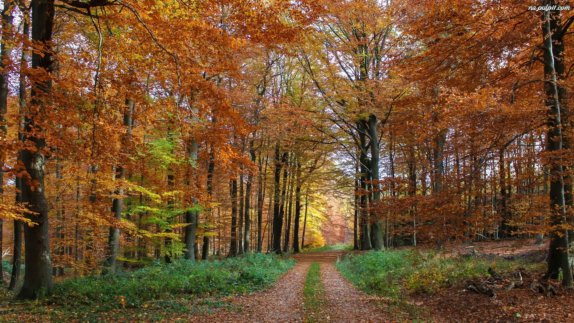 Drzewa, Las, Droga, Jesień Na Pulpit