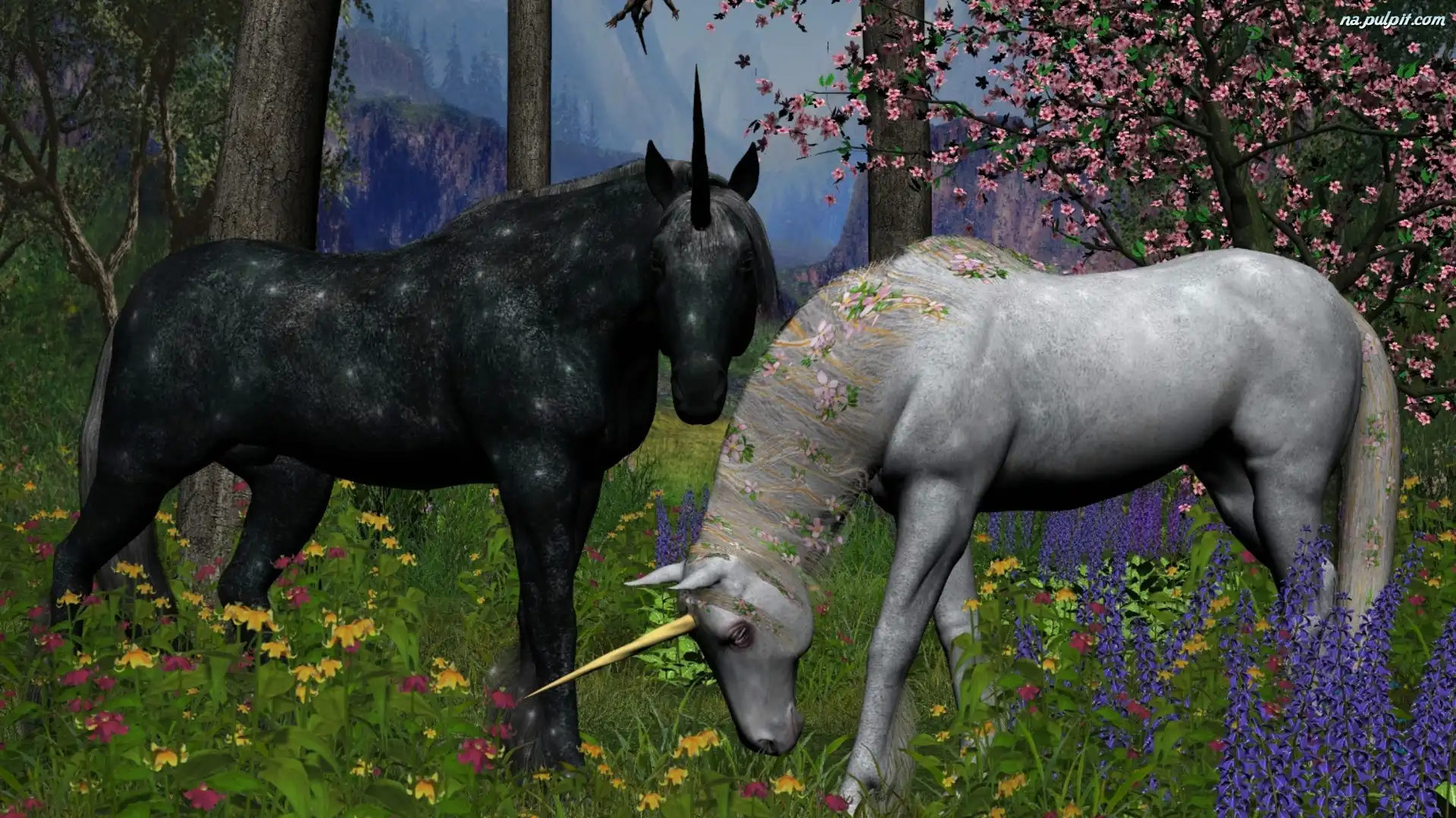 Drzewa, Jednorożce, Dwa, Kwiaty Na Pulpit