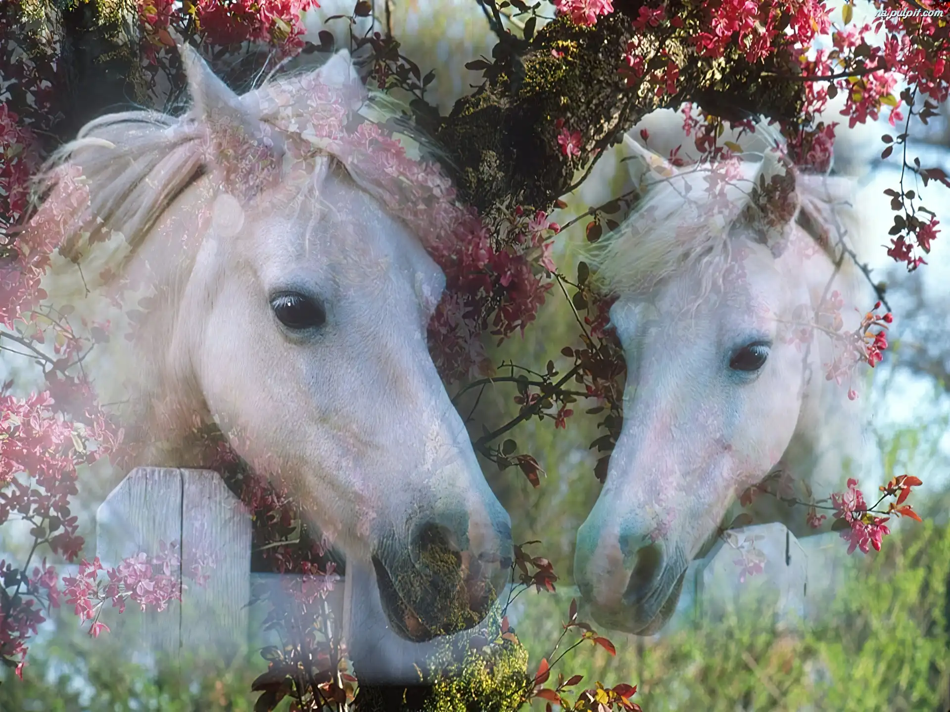 Drzewa, Konie, Dwa, Kwitnące Na Pulpit