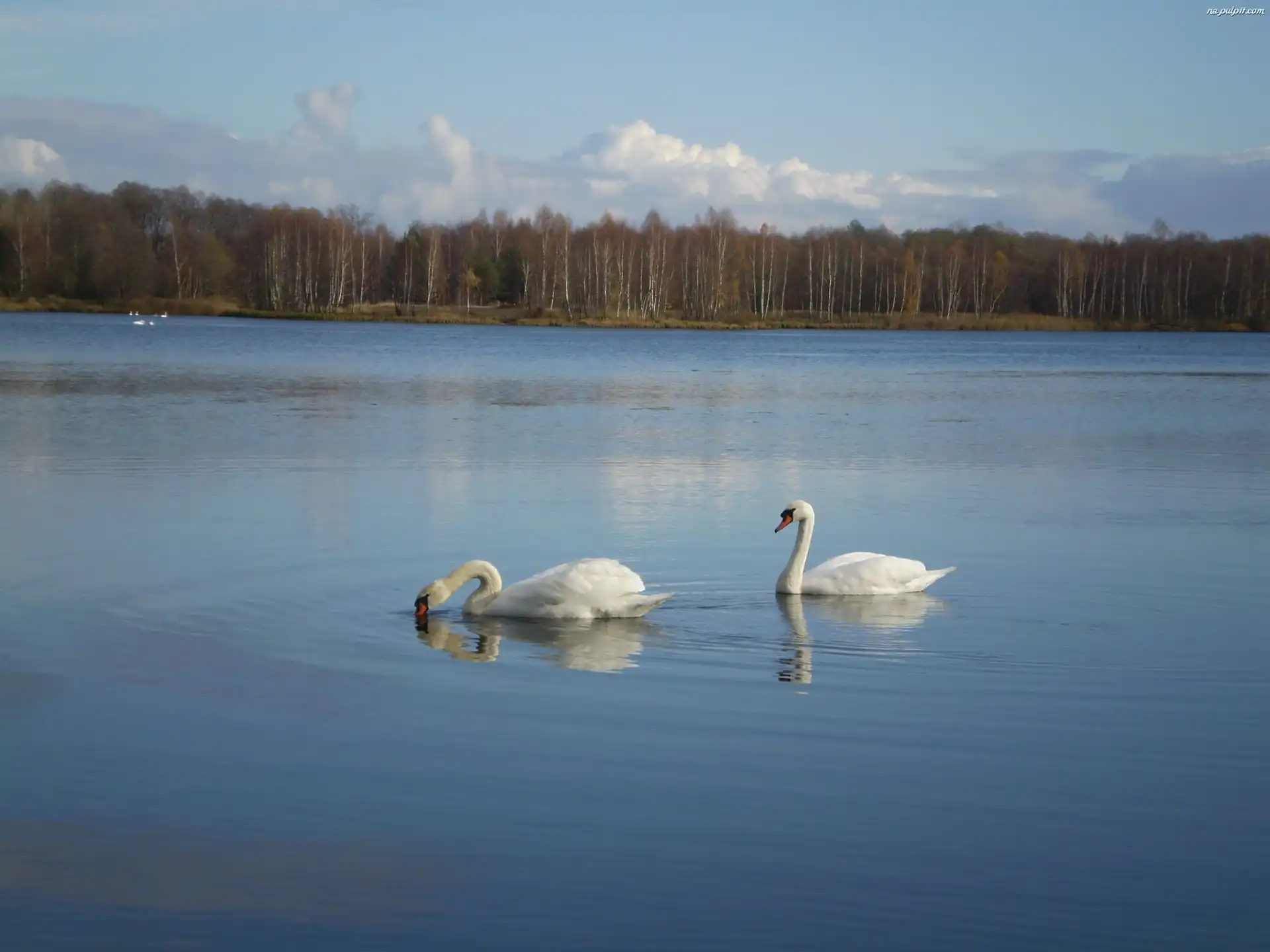 Drzewa, Łabędzie nieme, Dwa, Jezioro Na Pulpit