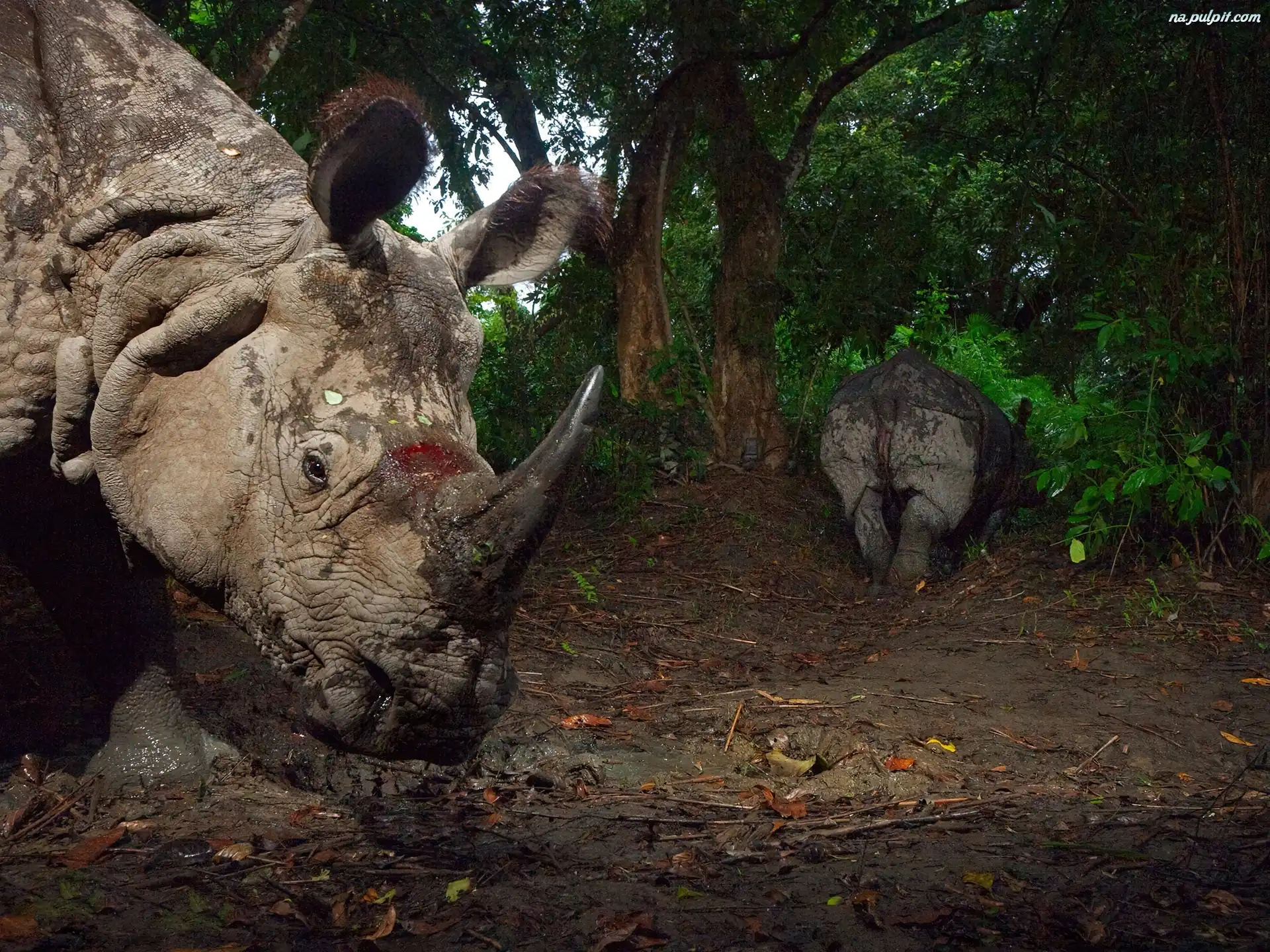 Drzewa, Nosorożce, Dwa, Róg Na Pulpit