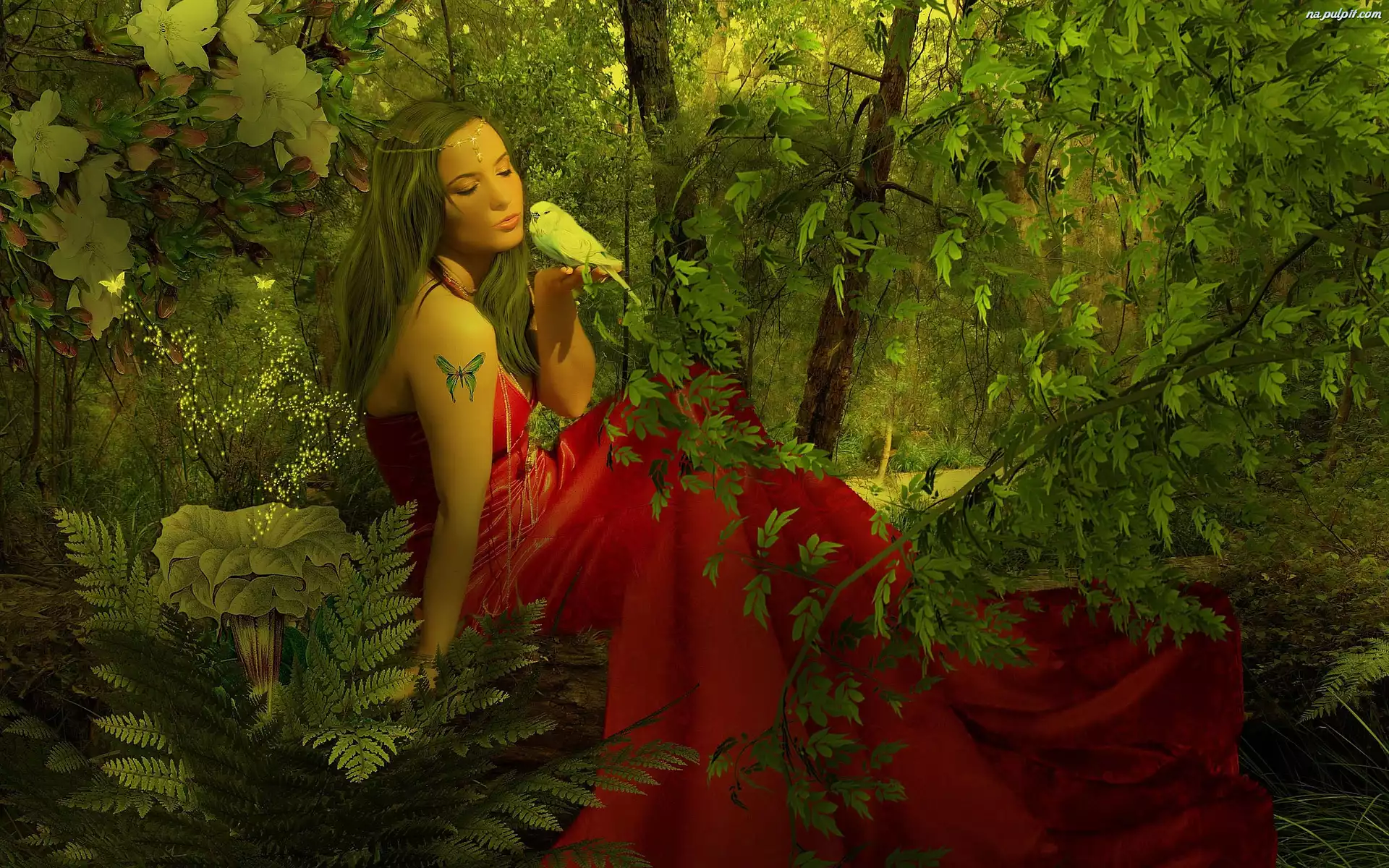 Drzewa, Tatuaż, Dziewczyna, Ptak
