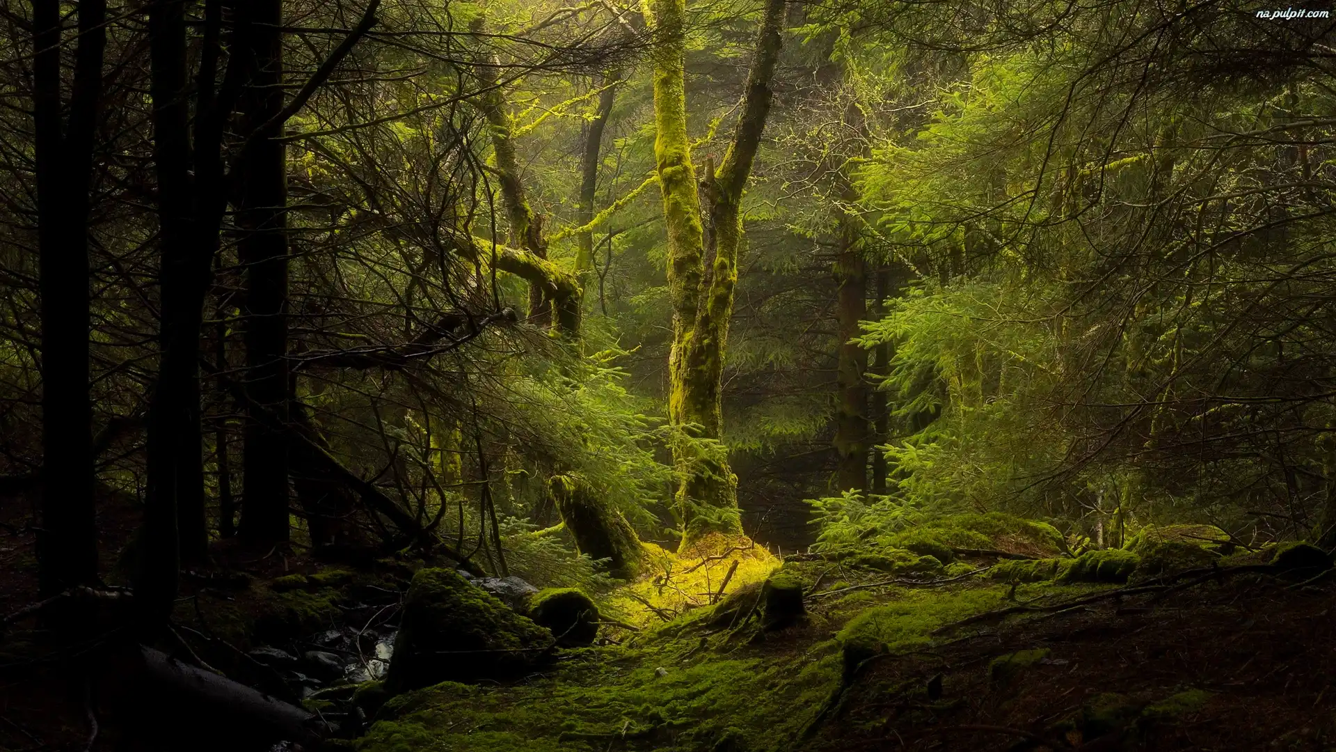Drzewa, Las, Gęsty, Omszałe Na Pulpit