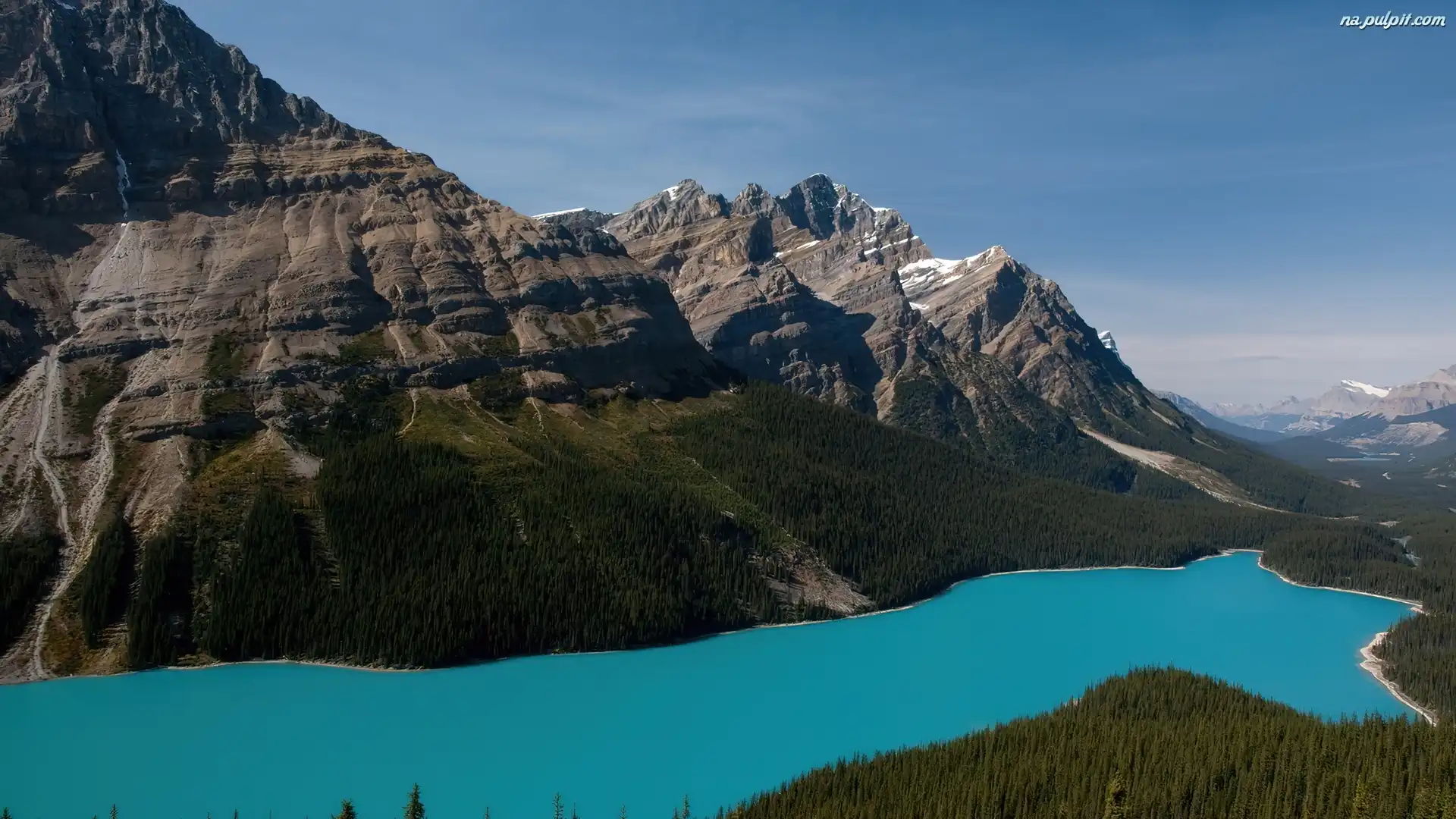 Drzewa, Błękitna, Góry, Rzeka Na Pulpit