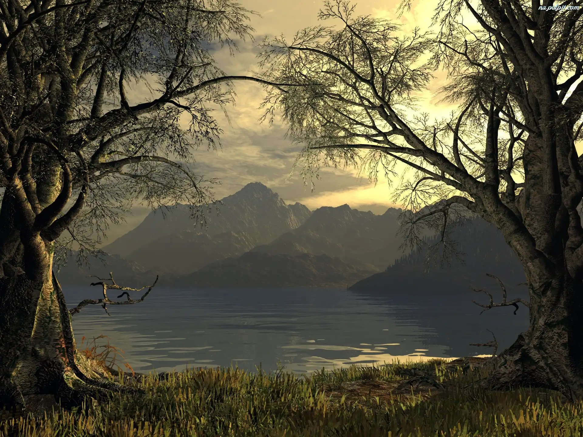 Góry, Drzewa, Jezioro Na Pulpit