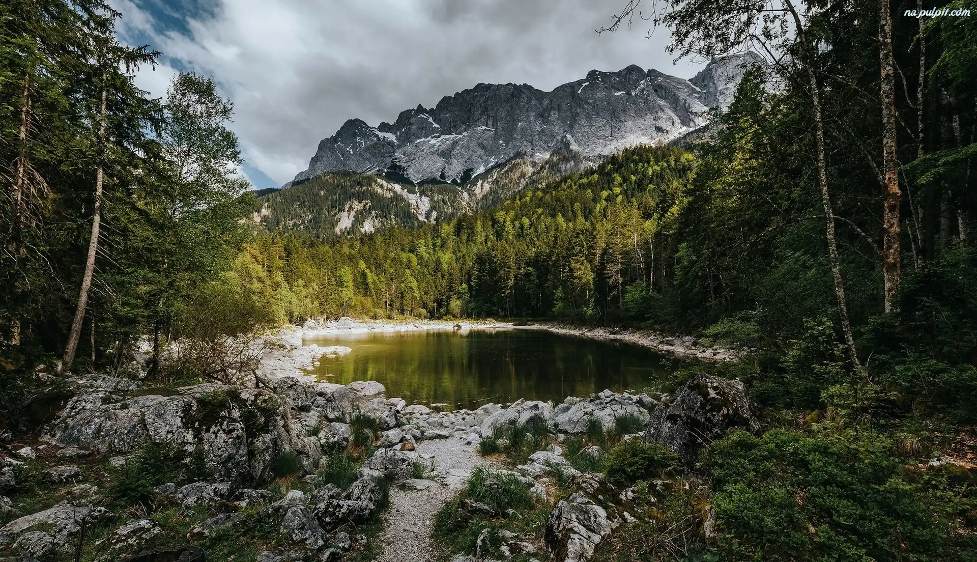 Drzewa, Jezioro, Góry, Las Na Pulpit
