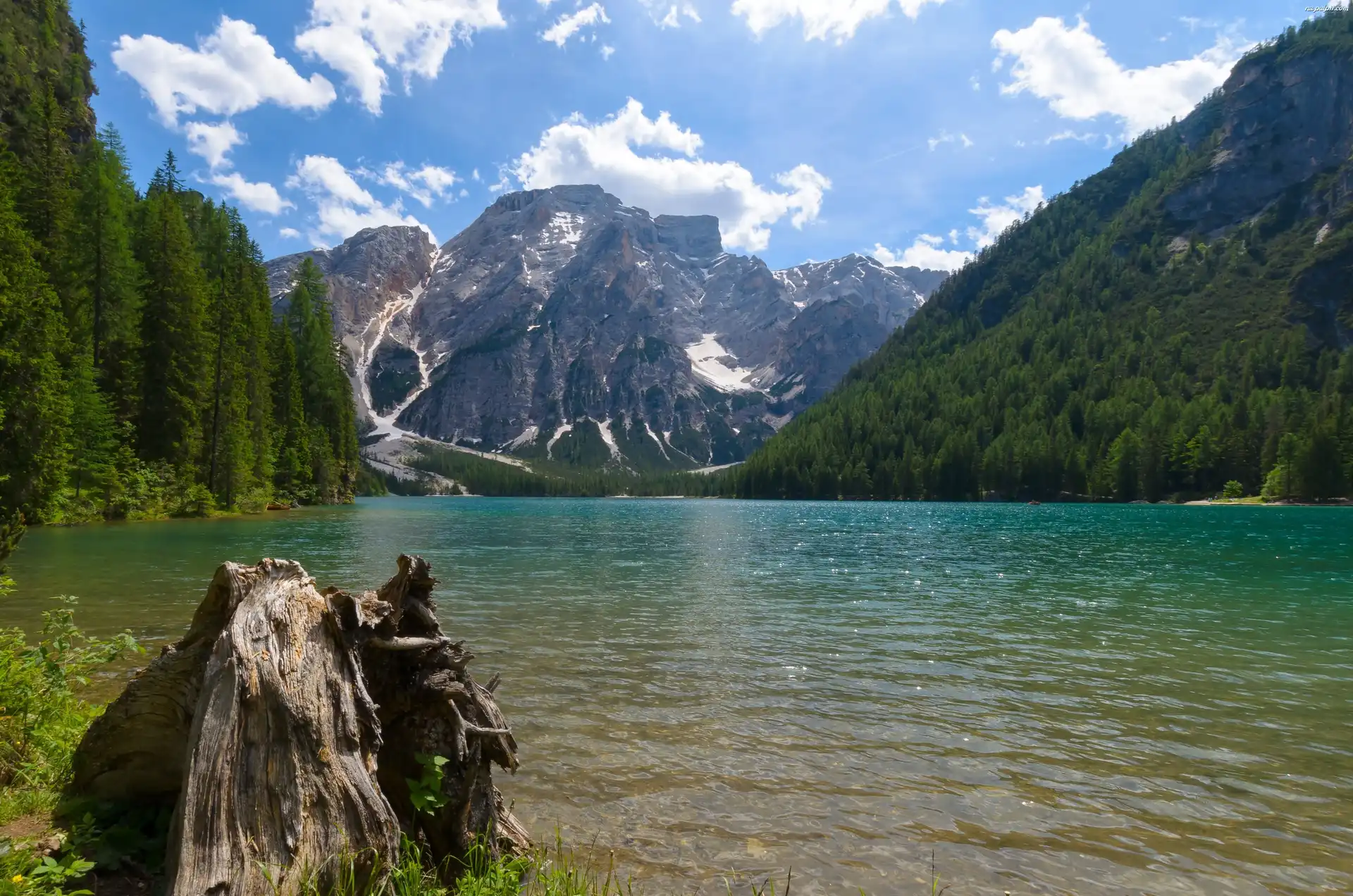Drzewa, Jezioro, Góry, Niebo