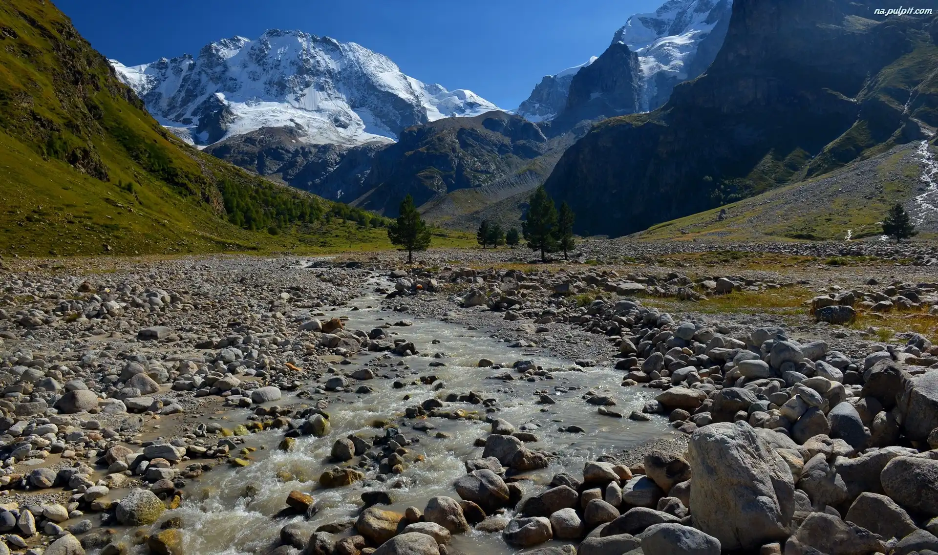 Drzewa, Potok, Kamienie, Góry, Rzeka Na Pulpit